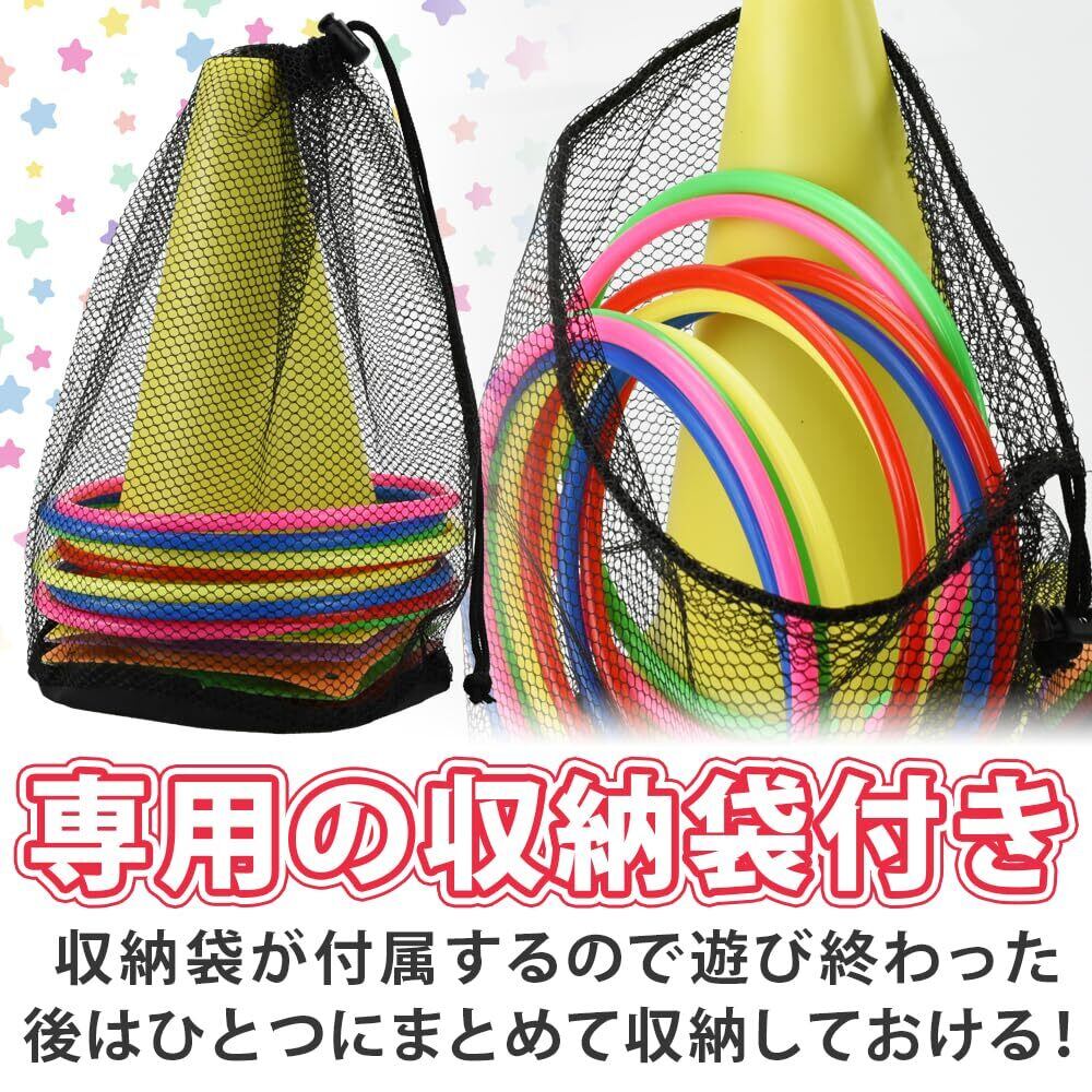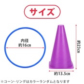 【セット内容】リング×10点 コーン×6点 収納袋×1点 【サイズ(約)】リング:内径16cm コーン:13.5cm×23cm 【カラー】※リングとコーンのカラーはランダムです。