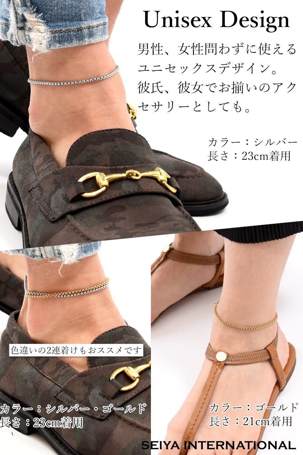 [SEIYA INTERNATIONAL] アンクレット メンズ レディース つけっぱなし ステンレス チェーン (ゴールド, 23)