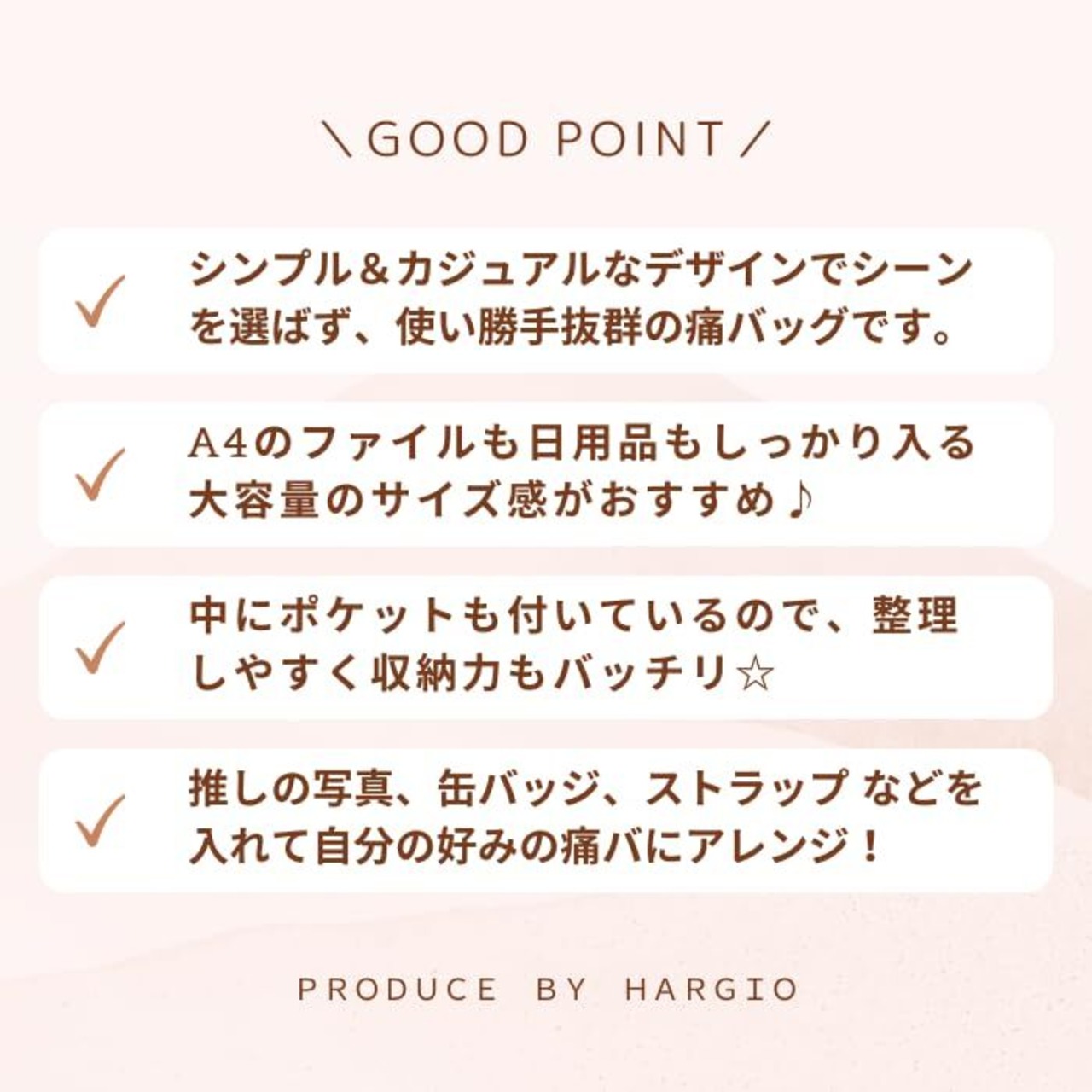 こだわりを詰め込んだ、HARGIOオリジナルの痛バッグが出来ました!