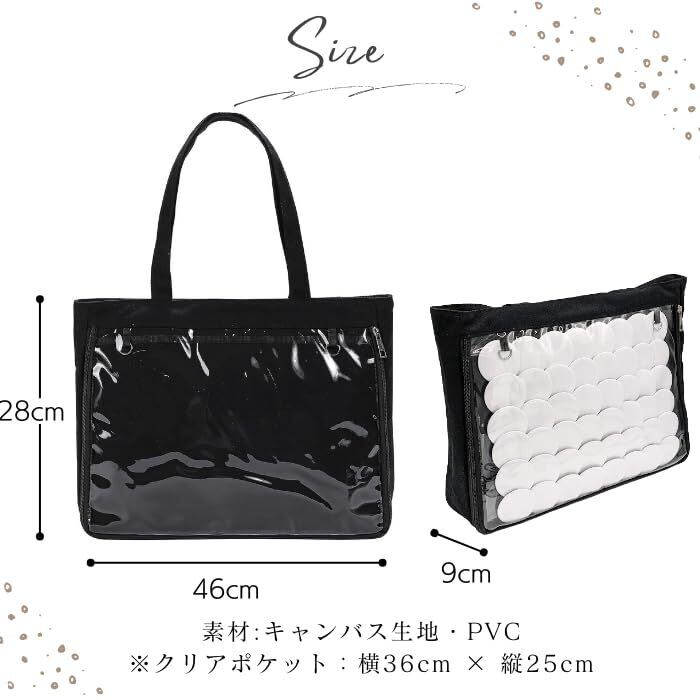 [ハルジオ] 痛バッグ シンプル トート 見せバッグ 透明 オタク 黒 白 ブラック ホワイト