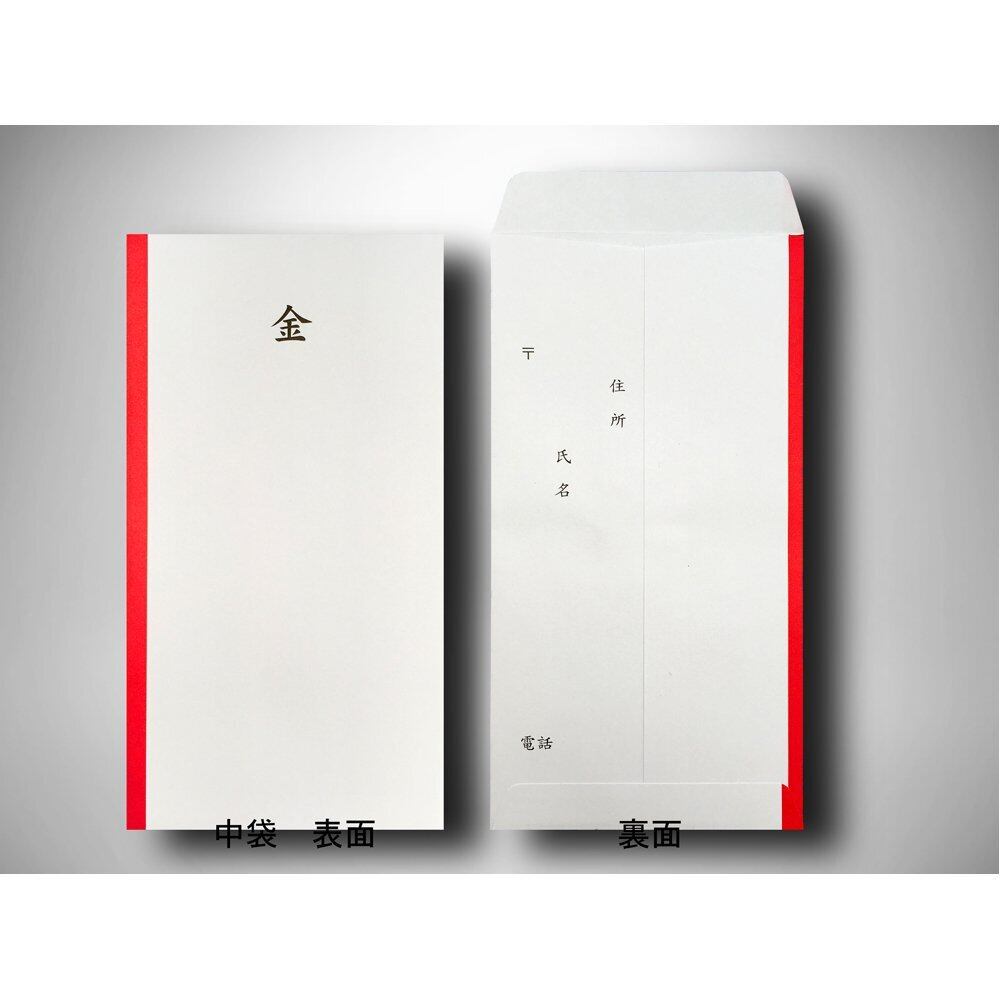 中袋の書き方一例としましては縦書きで表面に金額(金○千円)、裏面に住所・氏名等を記入。
