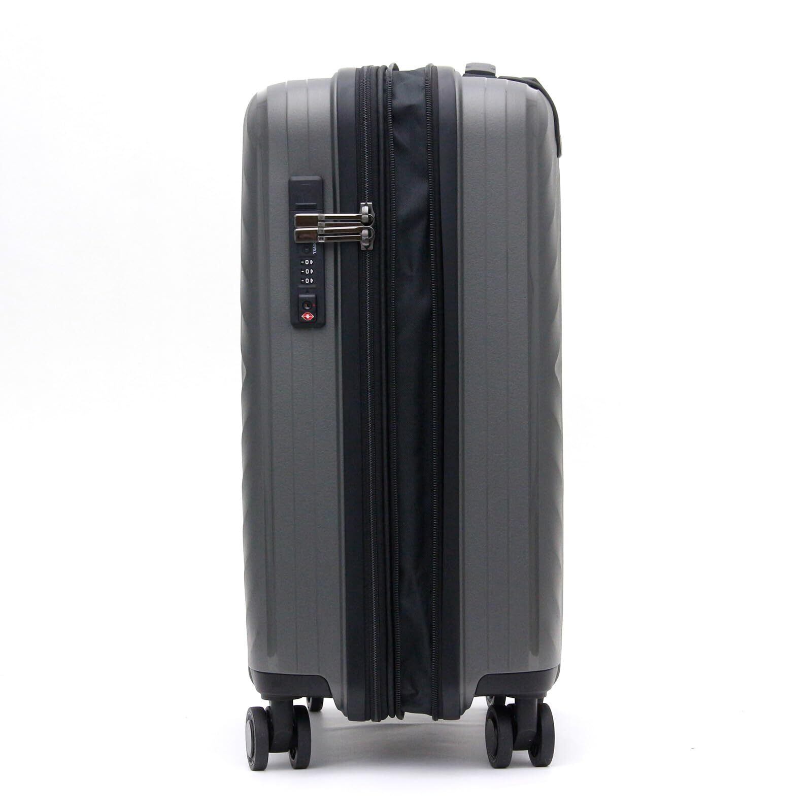 驚きの軽さと、たっぷり入る容量を実現。弾力性があり、衝撃に強いボディ。傷がつきにくく、目立ちにくいデザイン。ポリプロピレンを使用した超軽量スーツケース。双輪キャスターを搭載しておりバツグンの安定力と走行性を発揮。 荷物が増えても安心の拡張式。拡張ファスナーを開けるだけで約15%容量を増やすことができます。 フタ側の内装仕切りはファスナーで閉じられるので、開閉時に荷物がこぼれる心配がありません。 ロックは、鍵でもダイヤルでもどちらでも開閉できる2wayロック、シフレロックを採用。アメリカ方面への旅行に便利なTSAロックも標準搭載しています。 S、M、Lの3サイズ展開。 Sサイズは100席以上の航空機内持ち込み可能サイズです。(拡張時は機内持ち込みはできません)