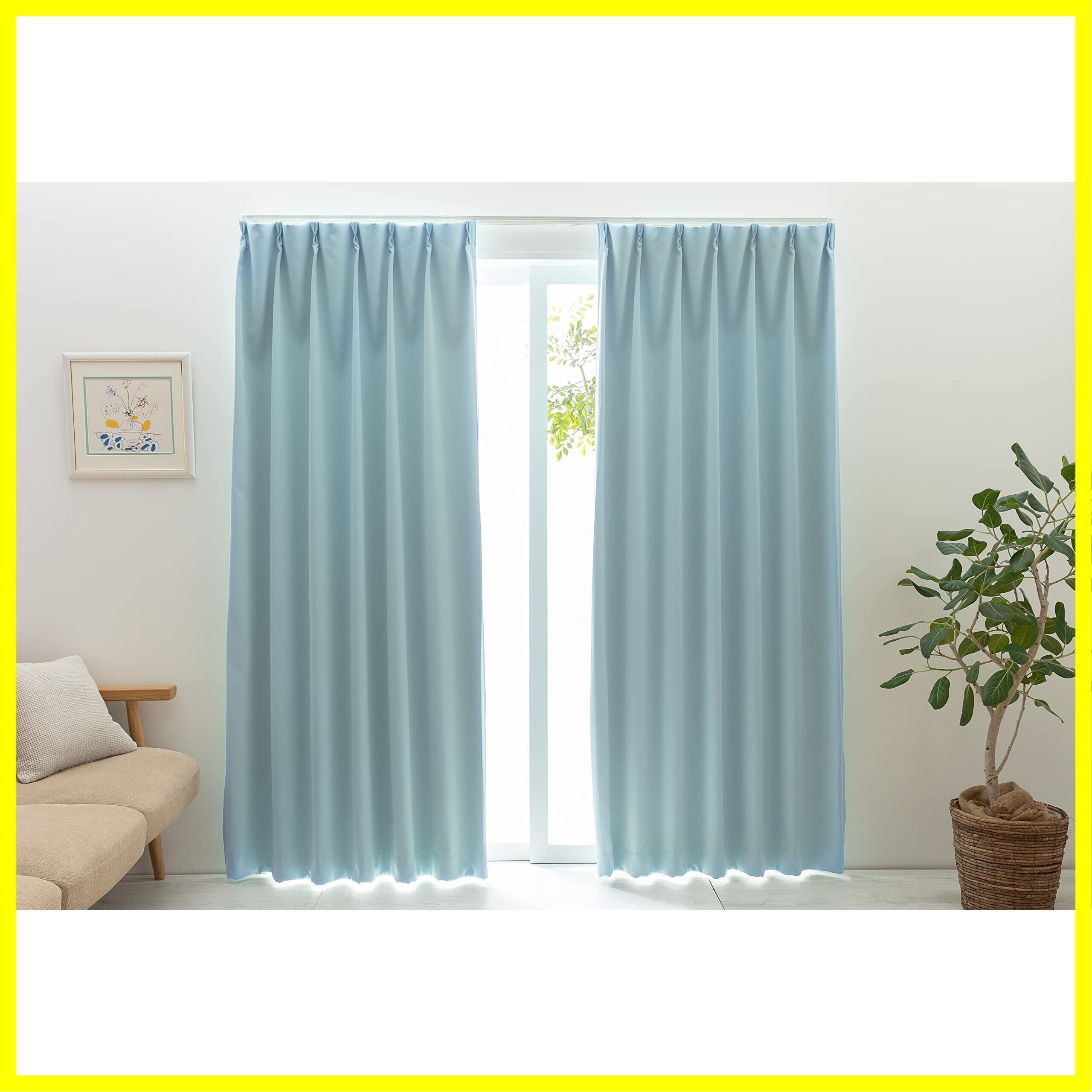 ユニベール 1級遮光 防炎 防炎ラベル付き 節電 省エネ 断熱 保温 日本製 無地 寝室 リビング カーテン 幅100cm×丈150cm 2枚 ベルーイ ブルー