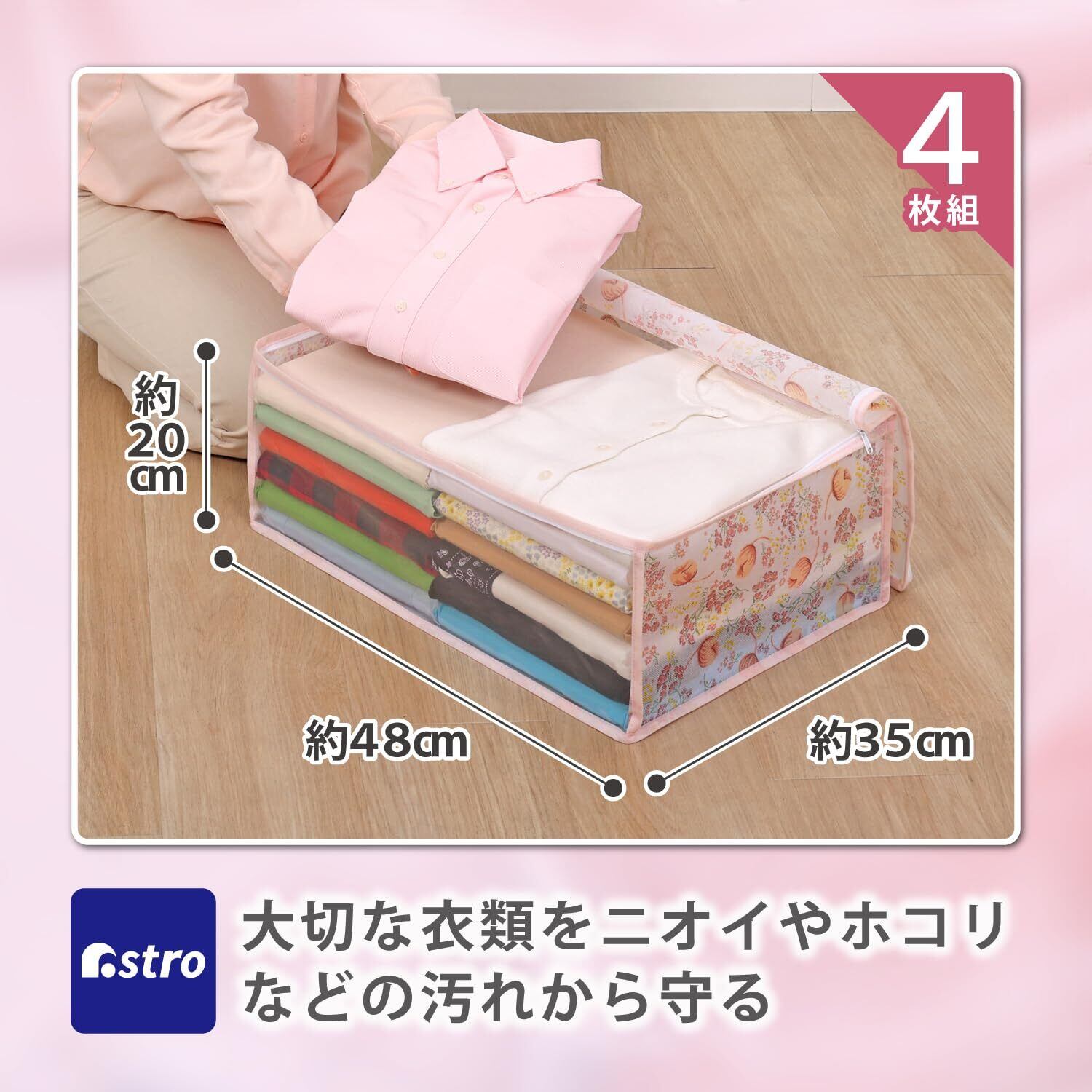 【おしゃれで機能的な衣類収納ケース!】「アストロ 衣類収納ケース」は、ホワイトのチューリップ柄が特徴的な、スタイリッシュで実用的なアイテムです。4個組で、クローゼットや押入れのスペースを有効に活用し、衣類を整理整頓するのに最適です。
