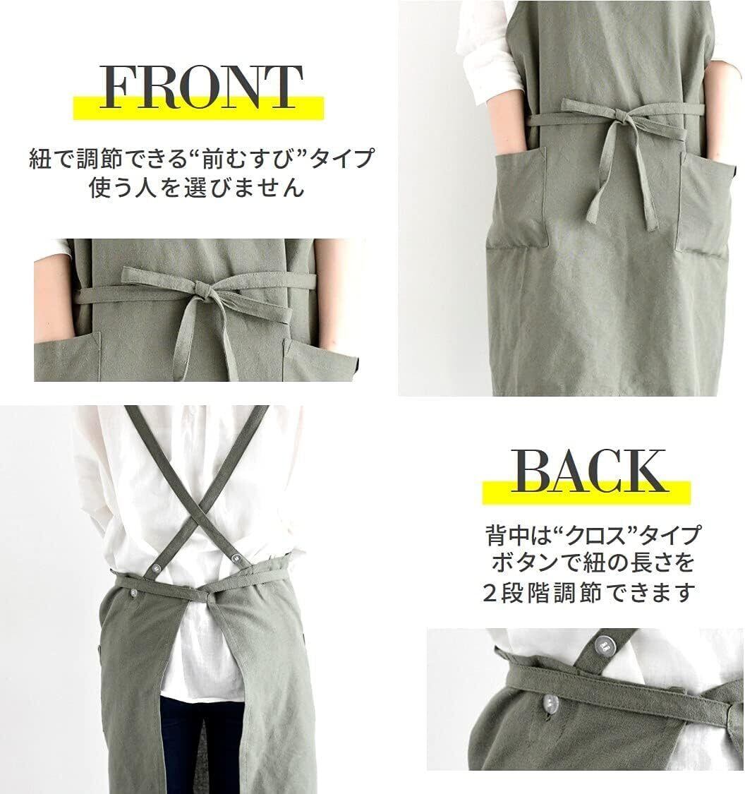 【5つの魅力】■しっかり結べる前結びタイプ:身長や体型を気にせず着やすくなっています■調節可能なすっきり肩紐:後ろのボタンで2段階に調節可能です■ポケット2か所:スマホや小物を入れてさっと取り出せます■調度いいサイズ感:長すぎず短すぎない着丈73cm■こだわり抜いた素材:インド綿100%使用。洗い替えに何枚あっても便利で、プレゼントにもオススメです。