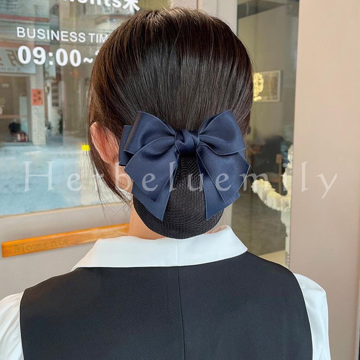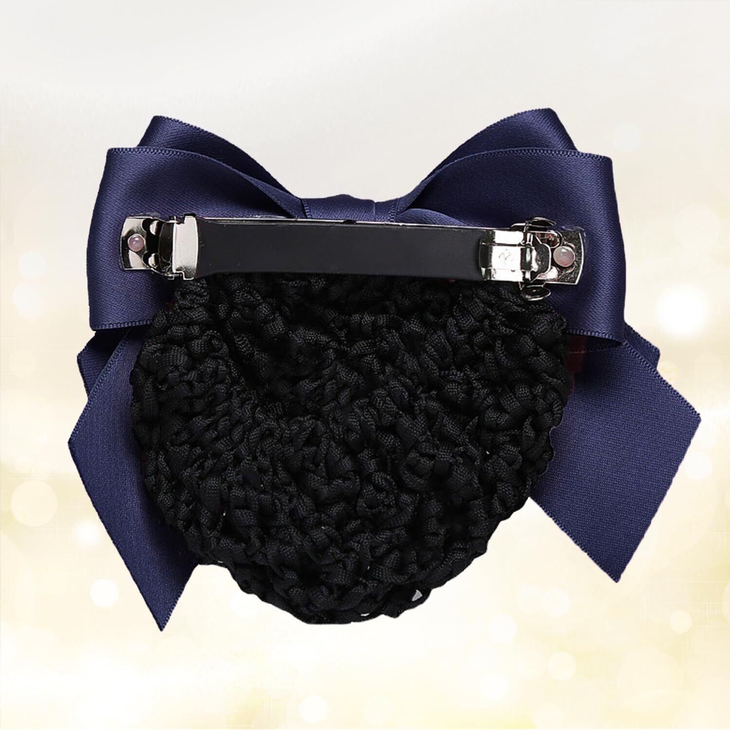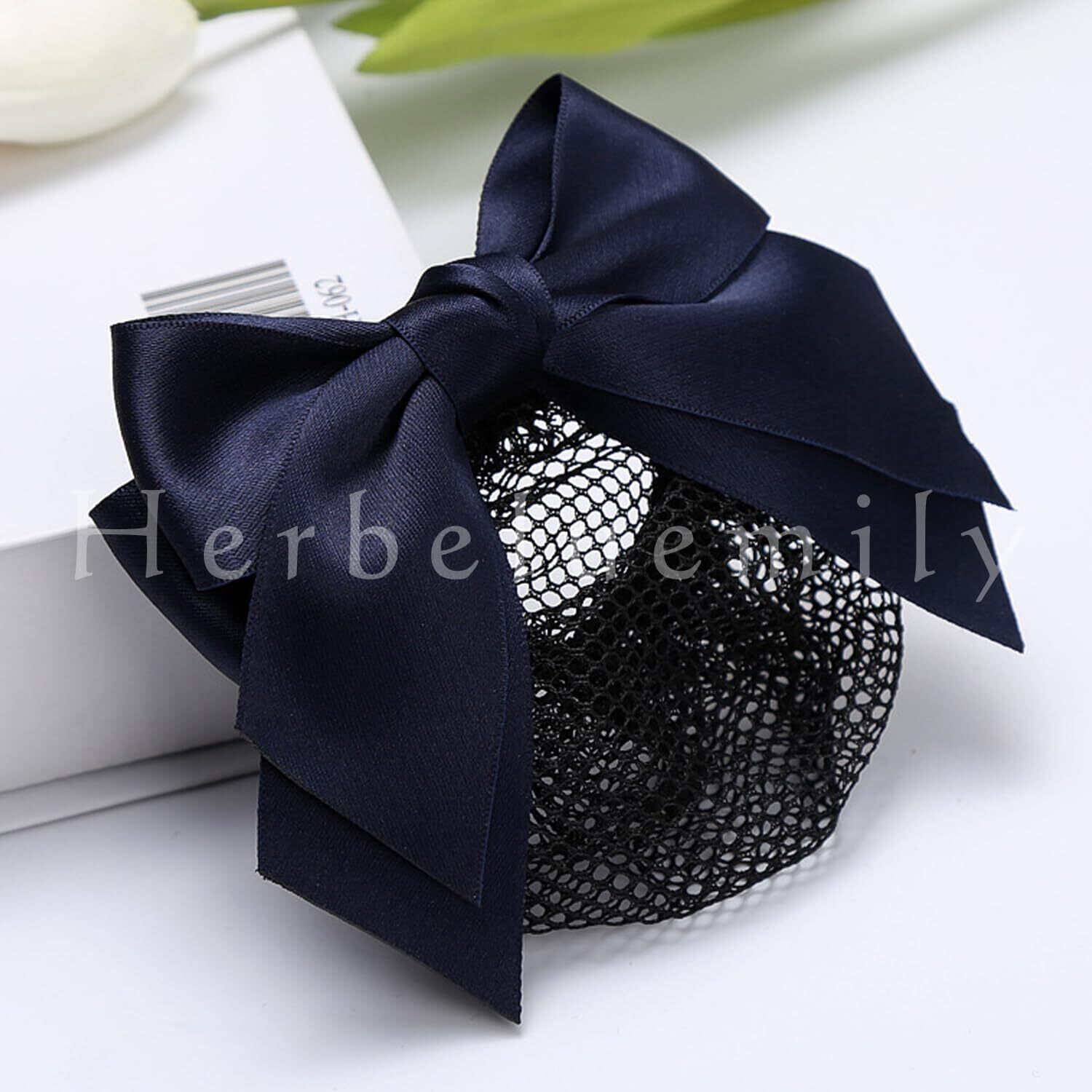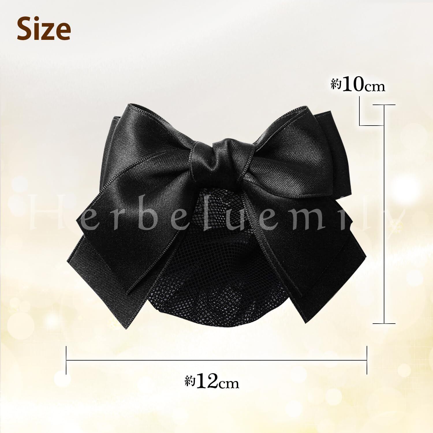 [Herbeluemily] シニヨンネット バレッタ リボン ネット付き 簡単 お団子ネット お団子カバー 冠婚葬祭 細メッシュ×ネイビー HM-0127-R04-A-NV