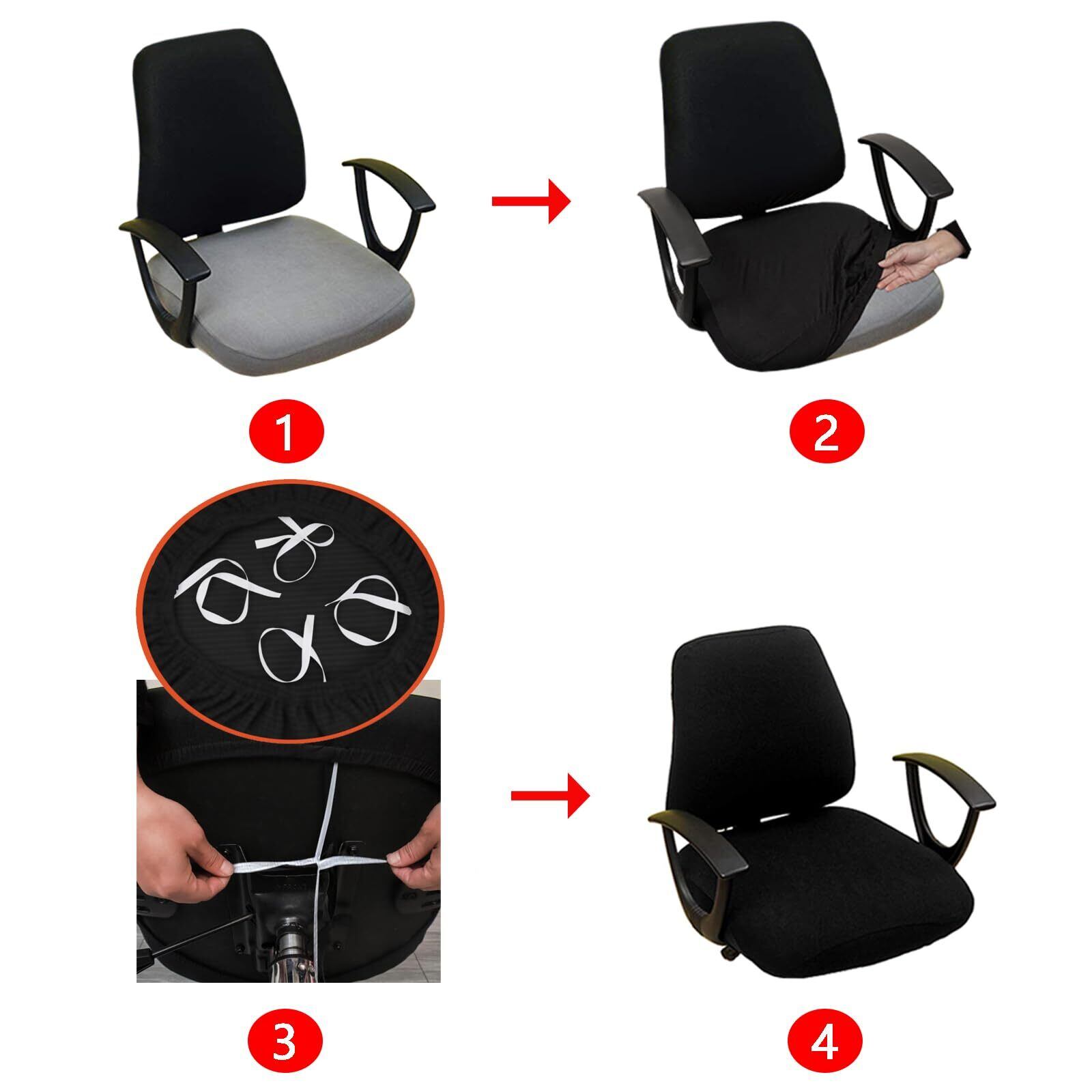 チェアカバー オフィス椅子カバー 事務椅子 伸縮素材 洗濯可能 取り外し可能 座面部分と背もたれ オフィスチェア カバー 背もたれ (ブラック)