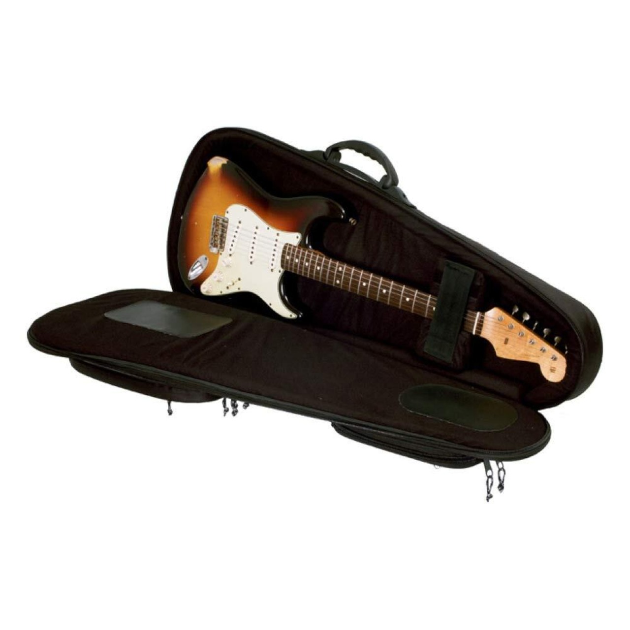 角度付きヘッドを除く、一般的なボディシェイプのエレキギターに対応した軽量セミハードケース。