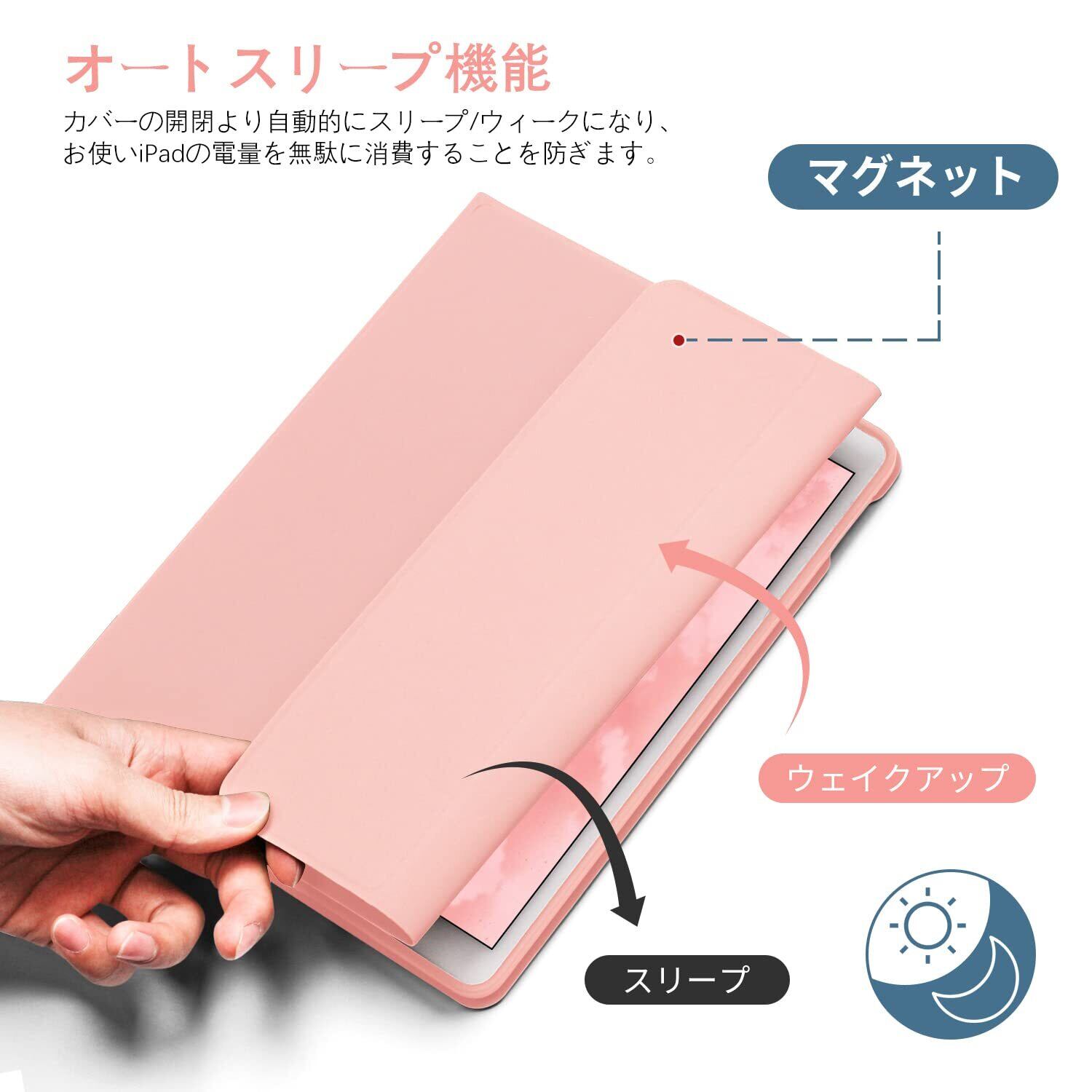 GOOJODOQ iPad 10.2 キーボード ケース 第9/8/7世代 Bluetooth カバー iPad9/8/7通用 脱着式 ペンホルダー付き スタンド機能 オートスリープ機能 多角度調整 傷つけ防止 耐久性 (ピンク)