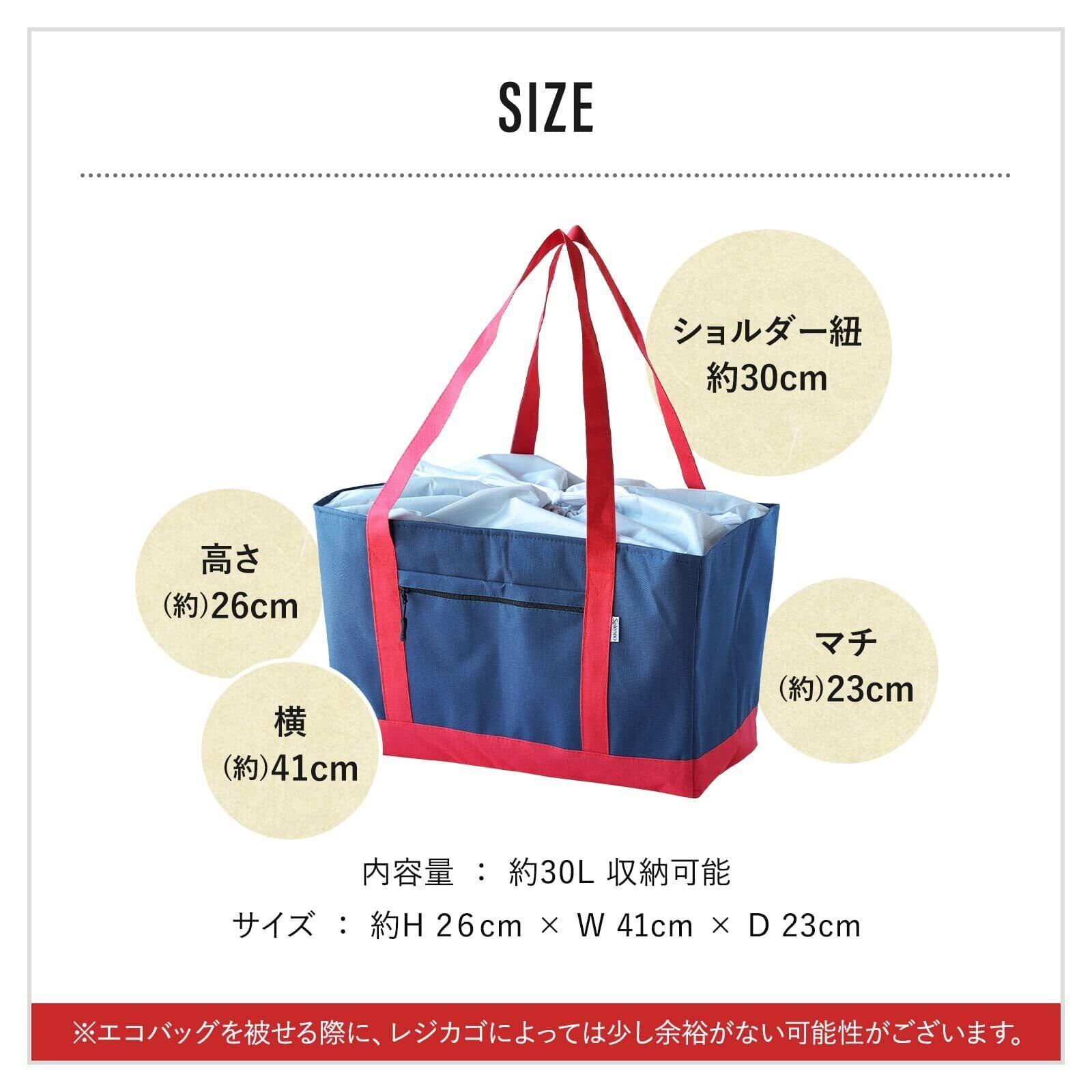 【レジかごにセットできる】 レジかごにセットするタイプの高機能保冷エコバッグです。精算時にかごにセットすると、店員さんが、レジを通した商品を、そのままこのエコバッグに詰めてくれるので、レジ袋への詰め替えの手間がありません。お会計をしたらすぐに持って帰ることができて、手間なし便利。大きさは大容量の30Lで、一般的なスーパーの買い物かごにフィットするサイズです。かご一杯の商品を、肩掛けでらくらく持ち帰ることができます。