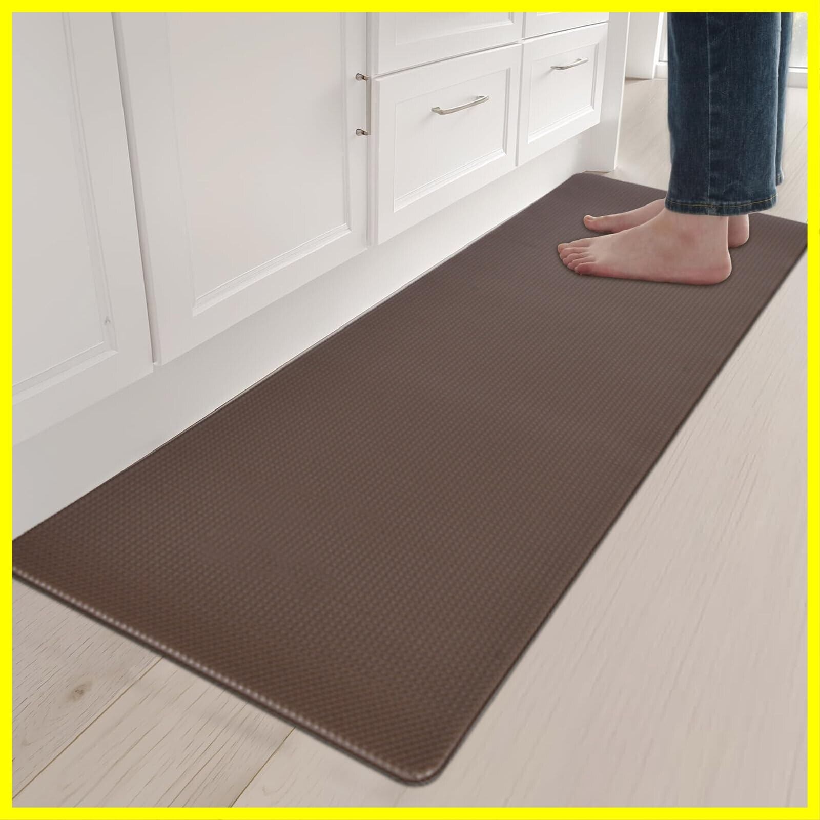 GOFORIT キッチンマット 拭ける 180cm 台所マット 低反発 クッション 8mm はっ水 防汚 洗濯いらず 踏み心地いい ずれない ブラウン
