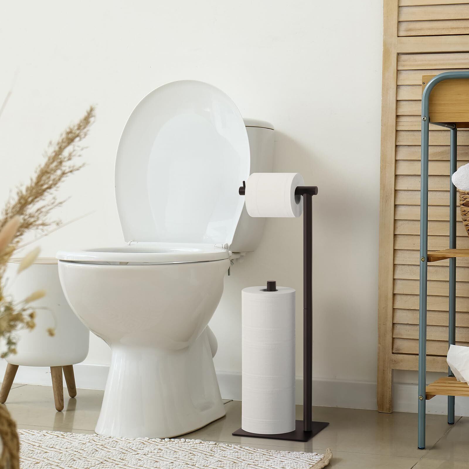 【省スペース】自立式トイレットペーパーホルダー はサイズが小さく、スペースを取りません。バスルーム、トイレ、キッチンなどの狭い場所に設置するのに適しており、スペースを効果的に節約し、部屋の環境を整えることができます、より整然とした秩序のあるもの。