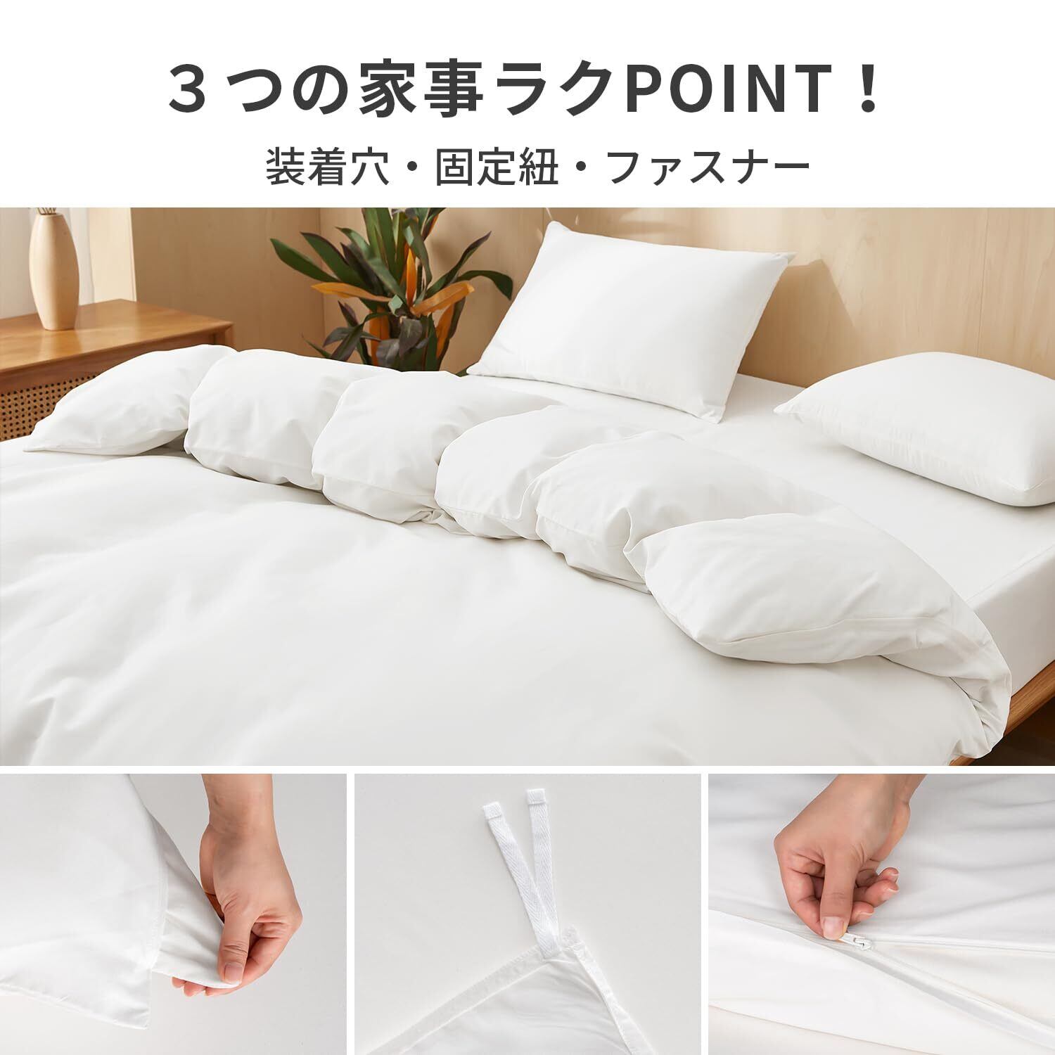 AZRA 掛け布団カバー シングル 150X210cm チャック付き おしゃれ オールシーズン ピーチスキン加工 通気 速乾 内側6ヵ所に紐付き 長辺全面ファスナータイプ 出し入れ簡単 ホワイト