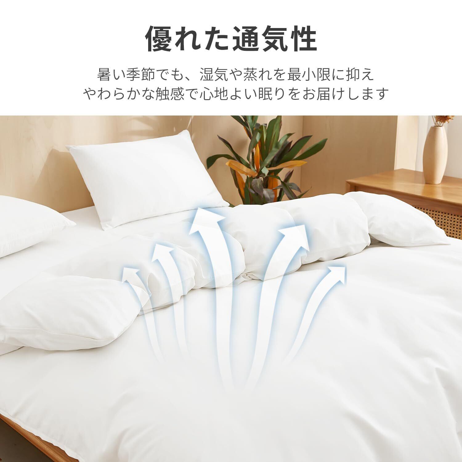 <通気性と速乾性>: ポリエステル 100%を使用するため、優れた通気性を持っています。睡眠中に生成された水分を吸収し、寝汗をかいても快適です。毛玉にりにくい、シワになりにくい。洗った後は素早く乾かすことができます。真夏から冬場までオールシーズンで快適にお使いいただける掛け布団カバーです。