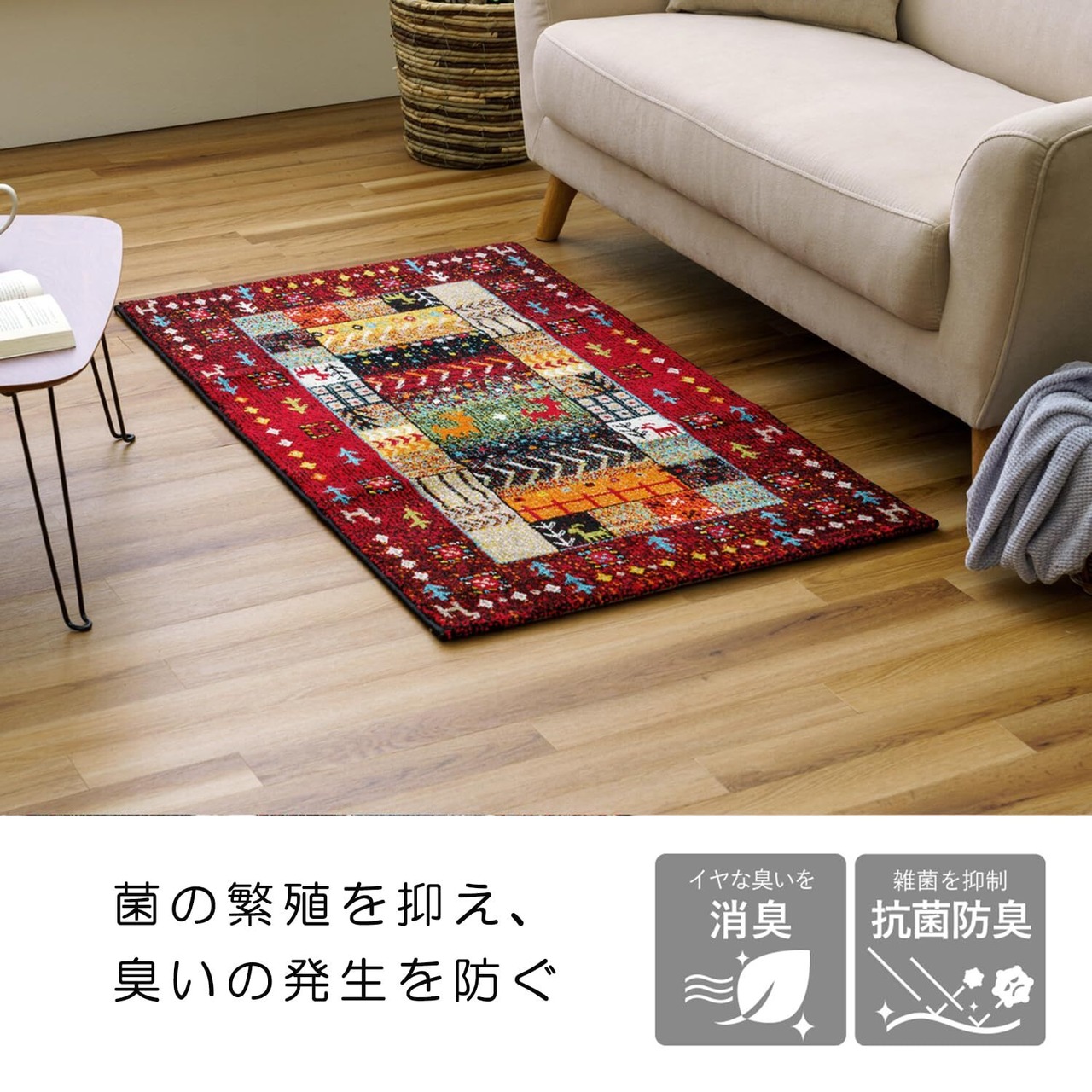 ウィルトン織りの玄関マットです。ラグでも人気の柄です。ウィルトン織りは非常に耐久性の高い織物です。家の中でも靴を履いて生活するヨーロッパで、土足で扱うことを前提として作られておりますので、長時間踏みつけてもヘタリにくく、弾力性もあり長くご使用頂けます。本商品の『繊維の密度を表すノット数』は112,000ノットです。本商品のパイル部分にはポリプロピレン素材を使用しております。ポリプロピレンはヘタリにくく、耐久性に優れ、繊維の中でも軽い素材です。また、汚れが付着しにくく、遊び毛や毛玉が非常に出にくいという特徴もあります。レッド色で明るく、アイボリー色で落ち着いた雰囲気に玄関のワンポイントとして、ご使用していただきますと華やかになり高級感がでます。抗菌・防臭、消臭機能がついていますので、臭いが気になる玄関でも安心してお使いいただけると思います。