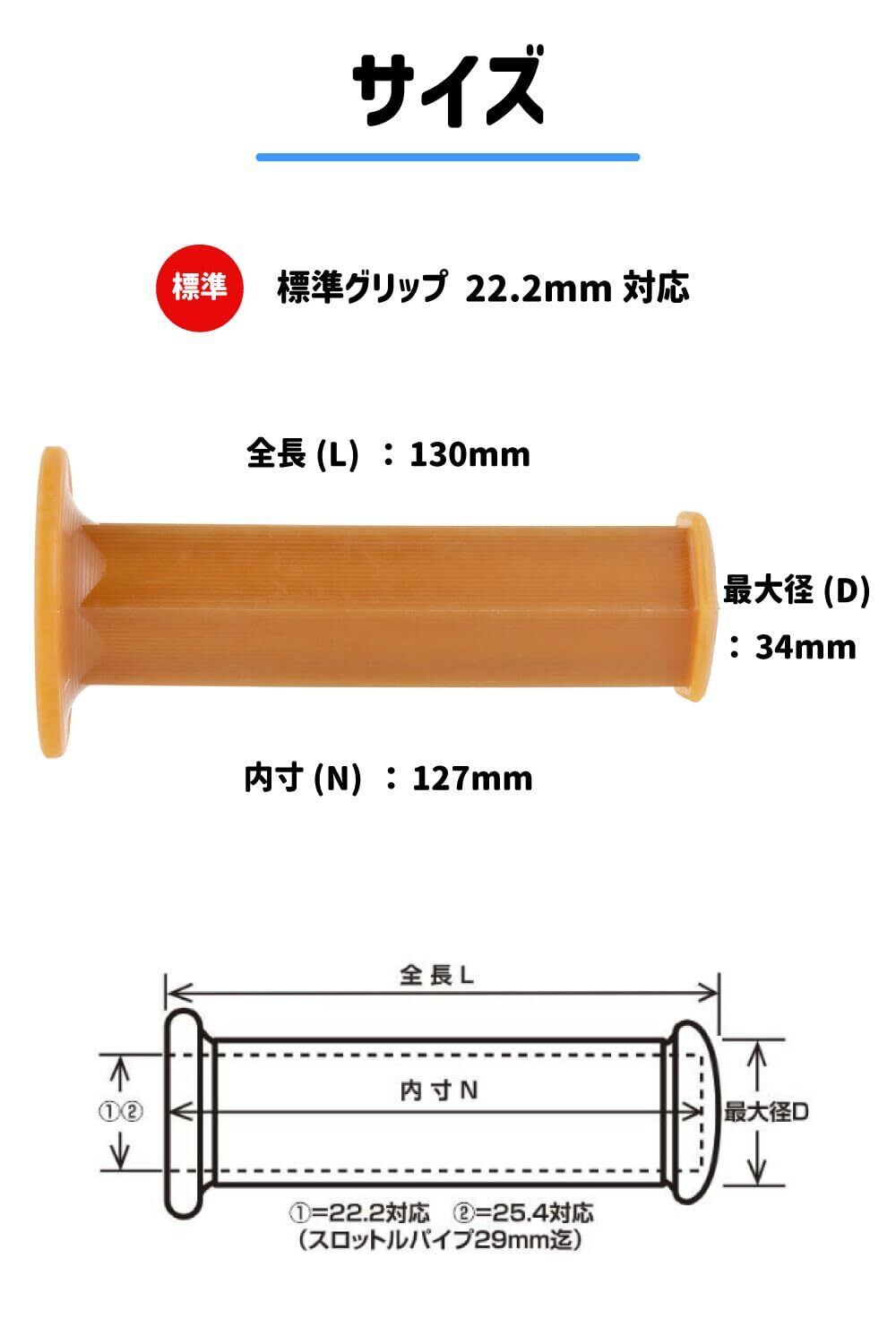 キジマ(Kijima) バイクパーツ グリップ 六角(ヘキサゴン) ラバー製 130mm φ22.2mm 非貫通タイプ 汎用 生ゴム 201-191