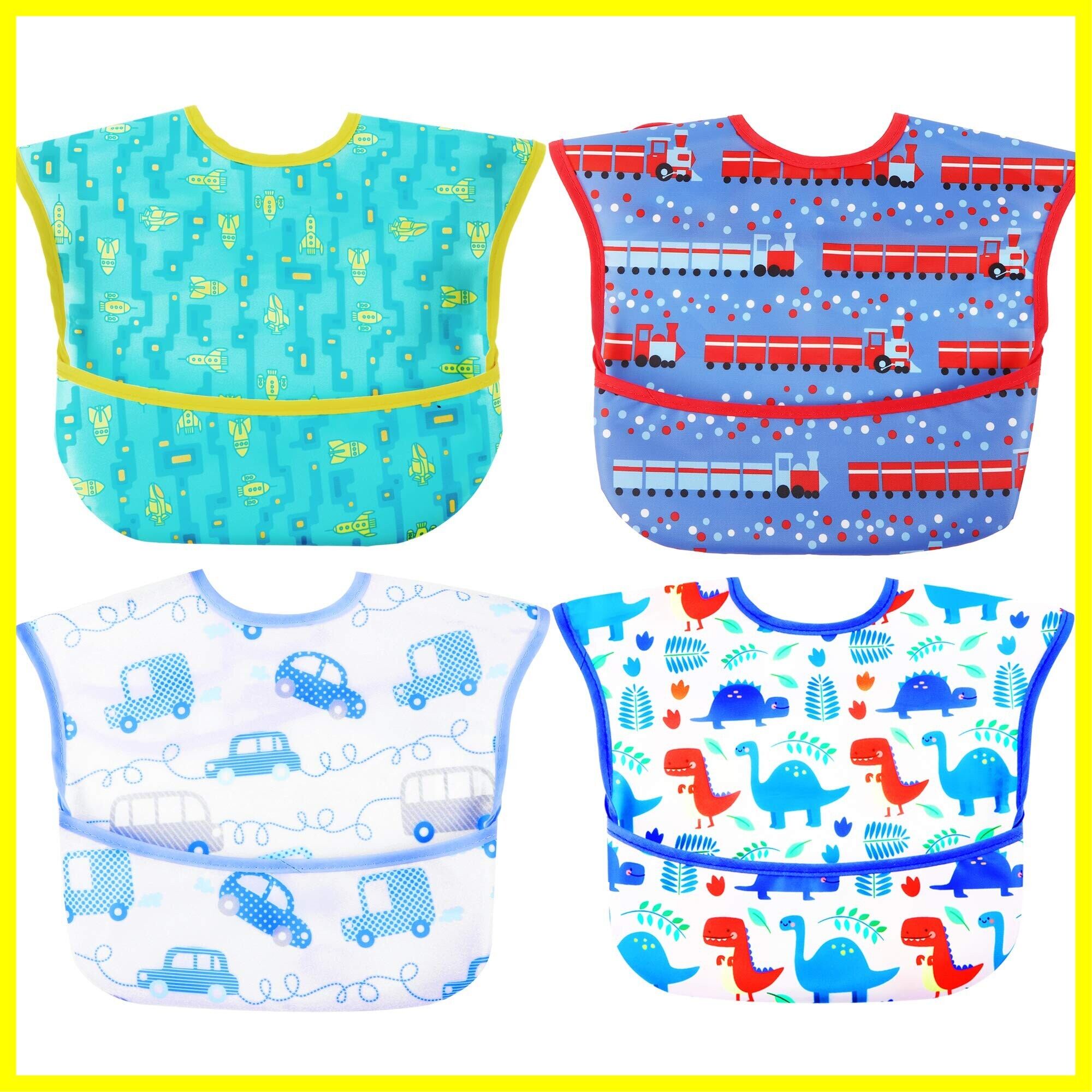 [スリーマッシュルーム] お食事用エプロン ベビー 離乳食 エプロン 3D 立体 保育園エプロン - 防水よだれかけ 赤ちゃん 4枚セット 速乾 洗濯機で洗える 名前を書ける 【保育士推奨】 保育園用 男の子 女の子