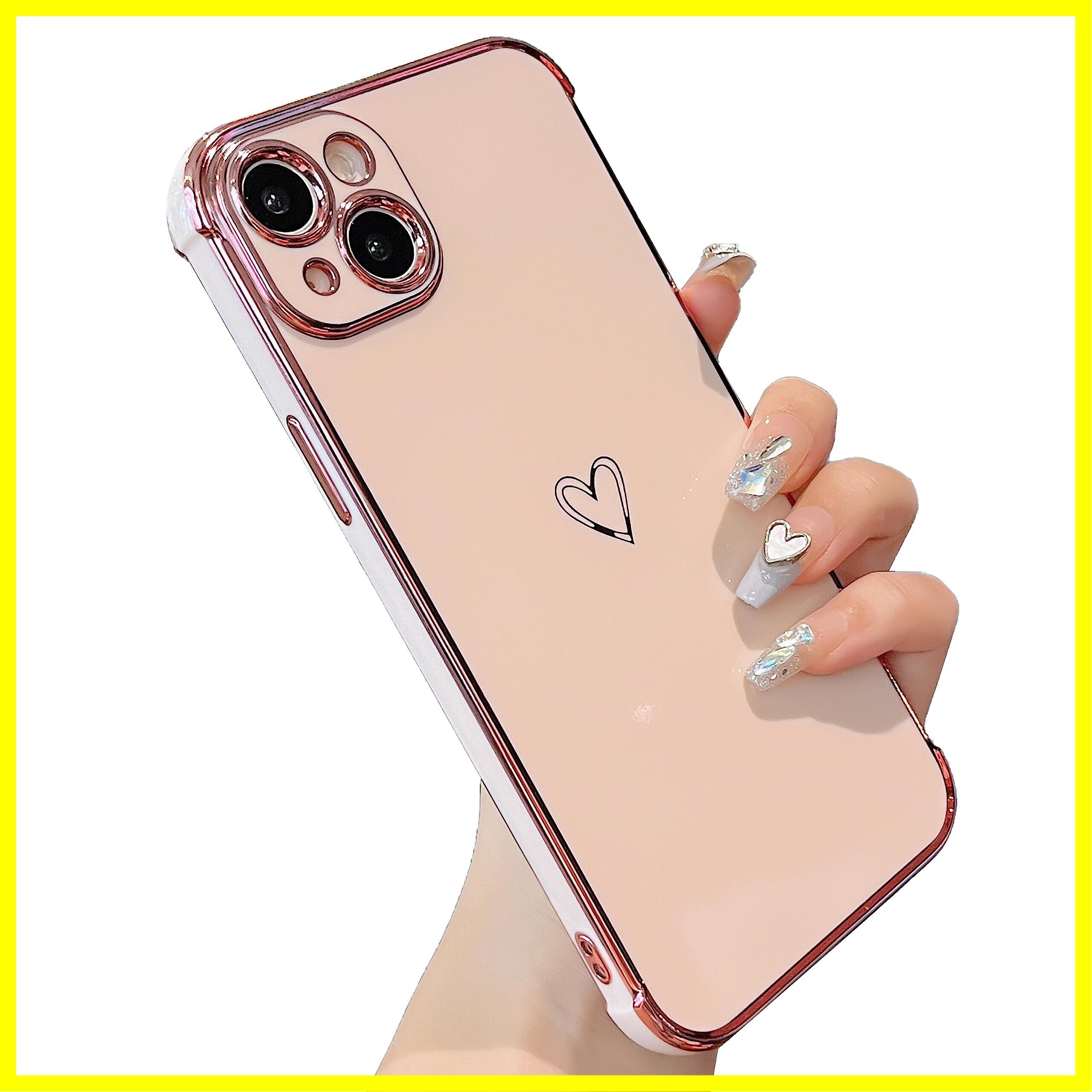 ZTOFERA iPhone 15 用 ハートケース iPhone 15 ケース 柔軟な TPU シリコン スマホケース メッキ加工 ソフト 軽量 耐衝撃 おしゃれ 韓国 可愛い アイフォン 15 ケース 女子 女性 心パターン 携帯電話カバー ワイヤレス充電対応 (ピンク)
