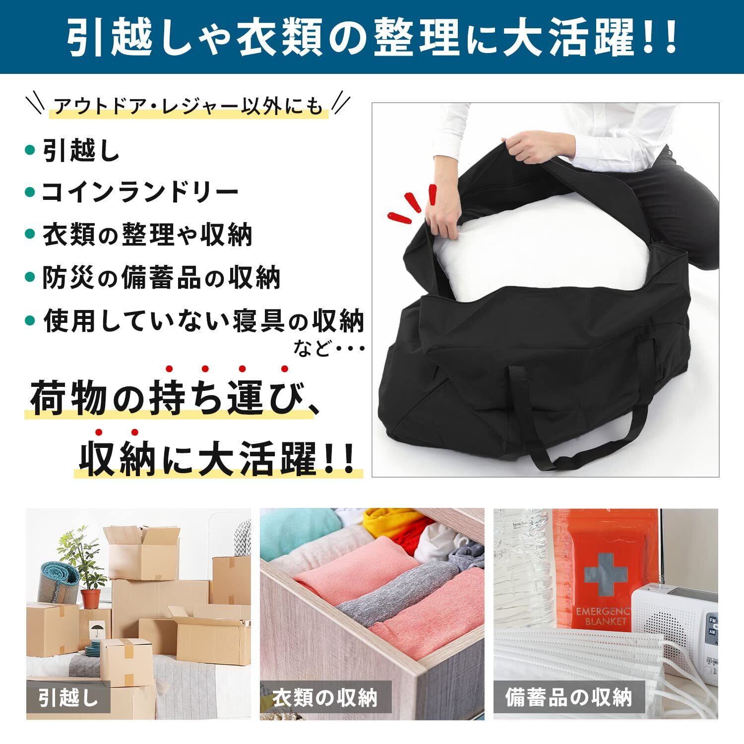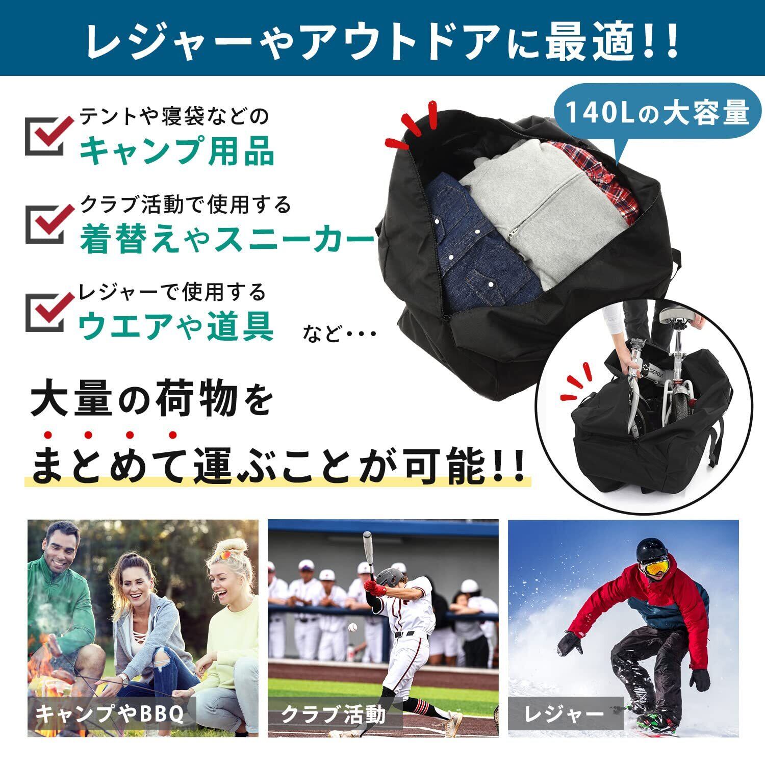 【大容量で大型のバッグ】 荷物の運搬 引っ越し 片付け 掃除 旅行 布団収納 出張 クラブ活動 アウトドア キャンプ 海 マリンスポーツ スキー スノーボード などの大量の荷物を運ぶのに大変便利です。ガシガシ使えるタフなバッグです。