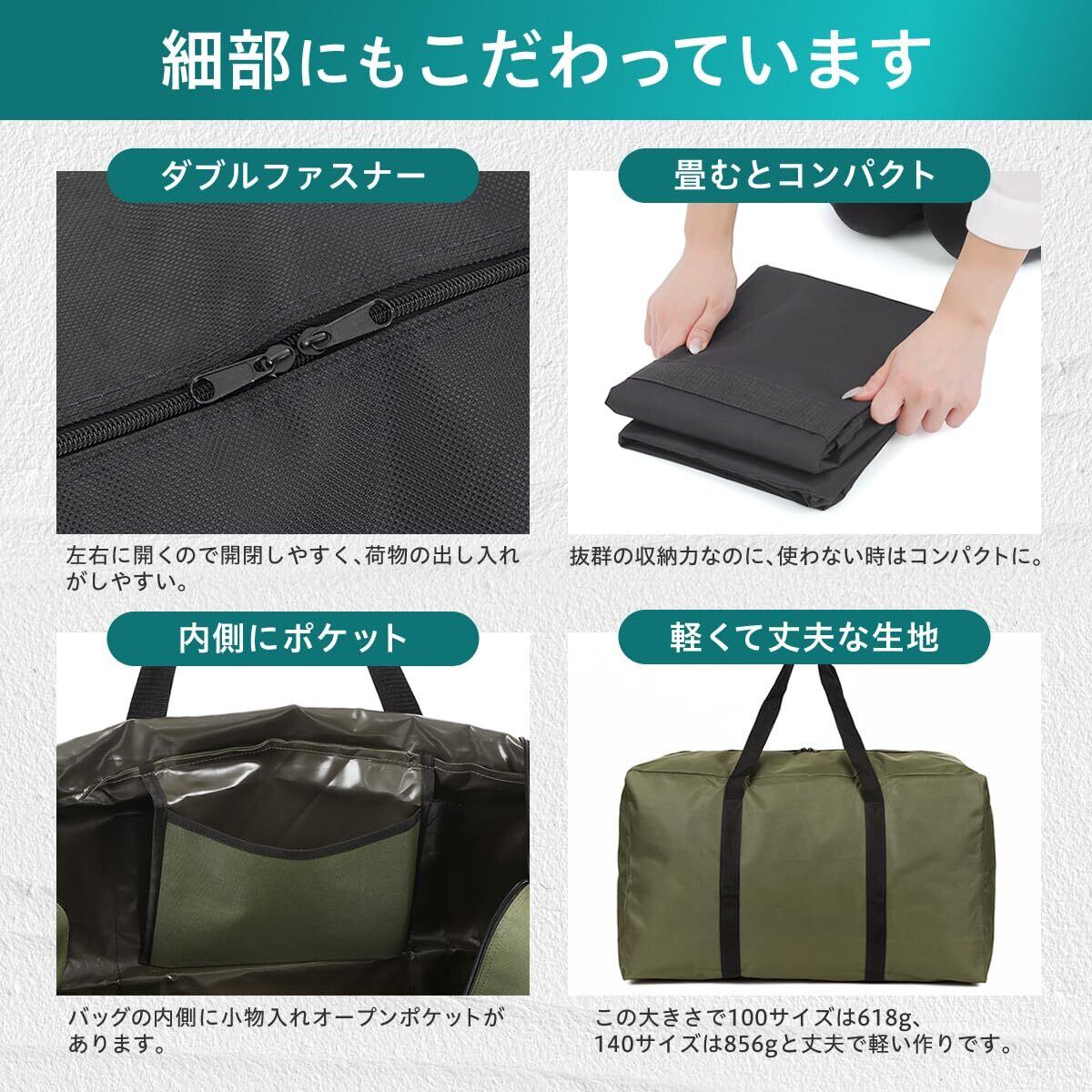 [ミウォルナ] ボストンバッグ 大容量バッグ 大型バッグ 大きい トートバッグ 旅行 軽量 140リットル アウトドア 折り畳み 収納 バック