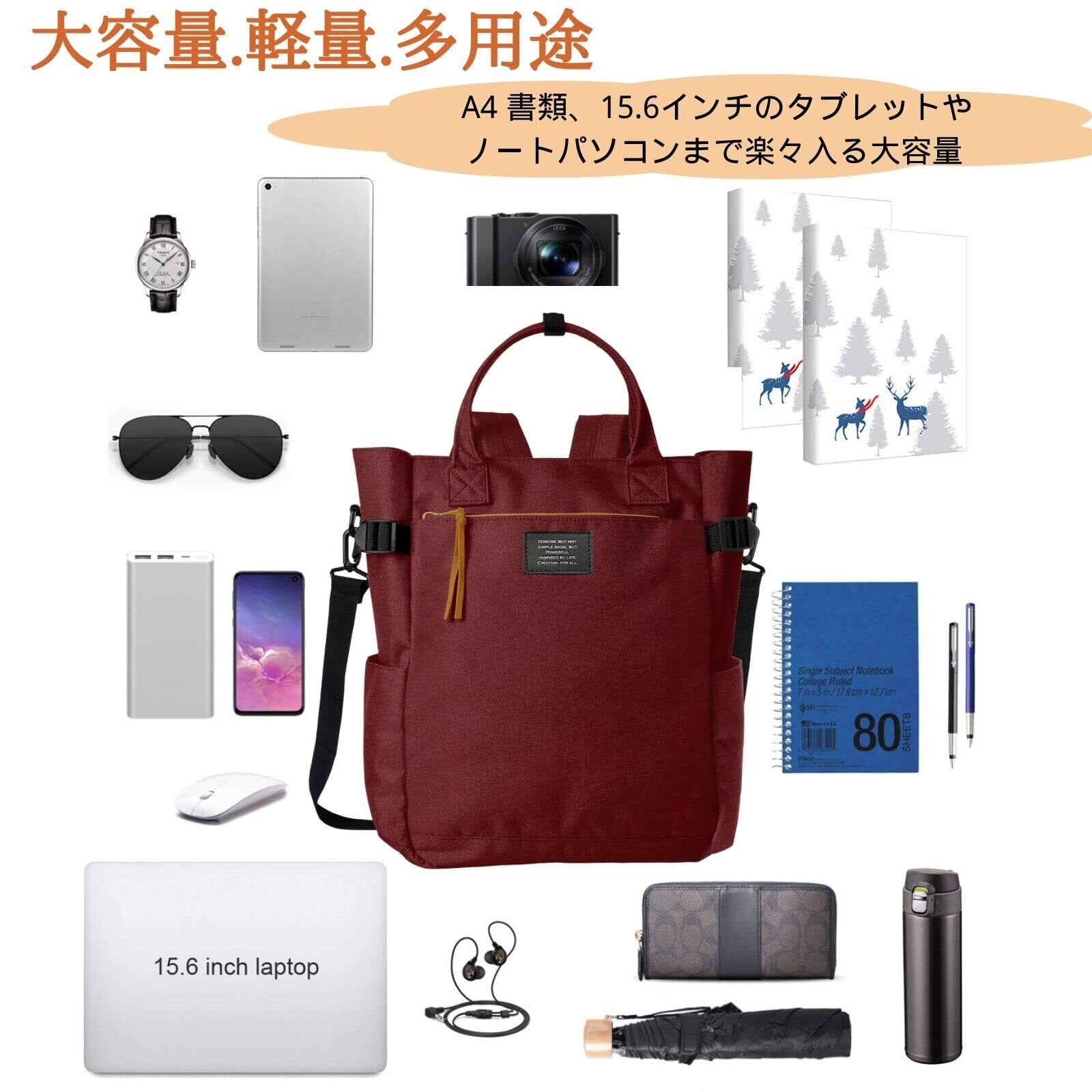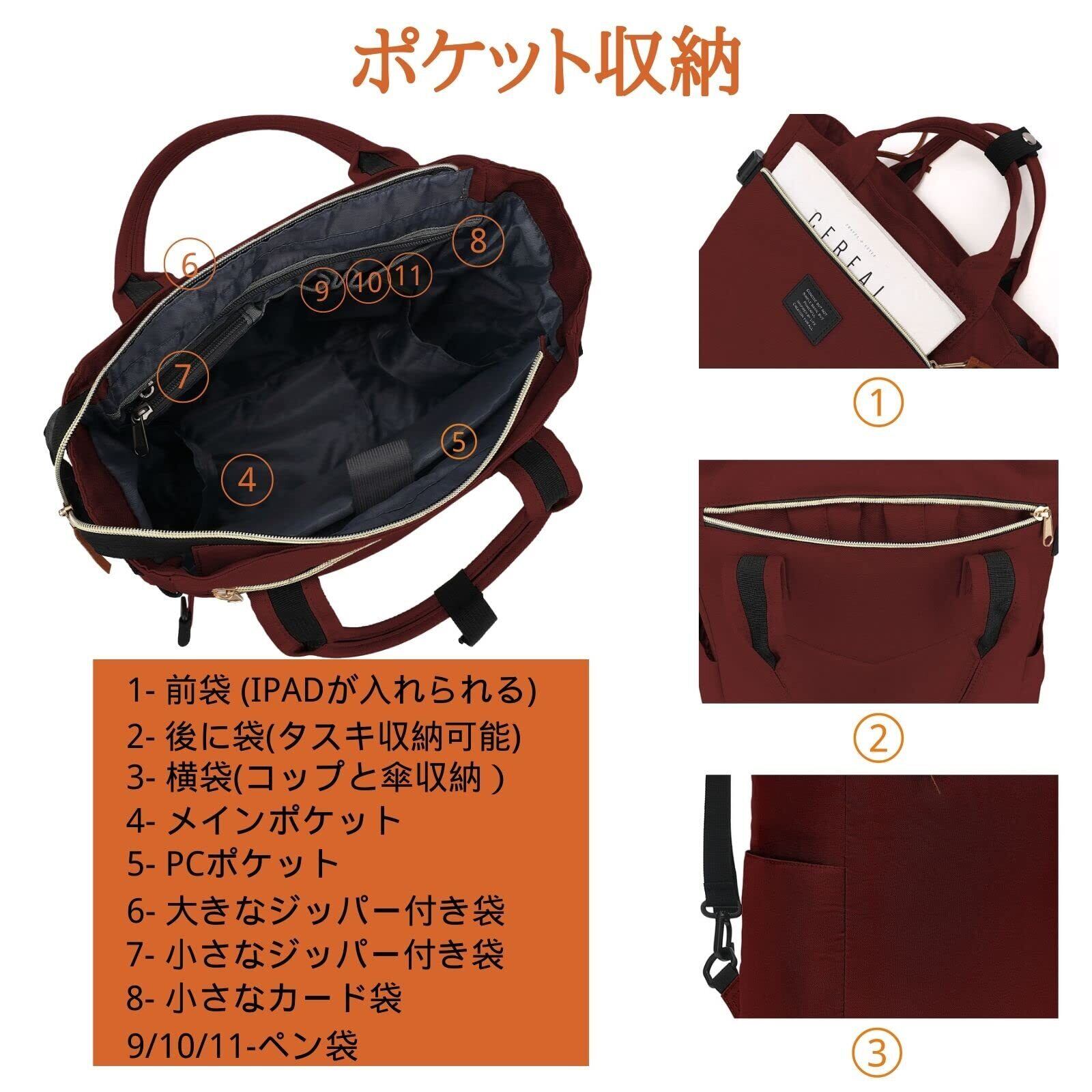 [大容量]大型トートバッグのサイズはヨコ26cm*タテ39cm*マチ14cmです。(重量:550g約)しかも、ポケットがいっぱいあります(10つ)。正面と背面はジッパーポケット、両側はサイトポケットがあり、水筒などの物が放置できます。バッグの中にはクレジットカード用、万年筆用、財布用、水筒用、ノートパソコン、iPad用のポケットがあり、荷物が多くても綺麗に収納できます。カメラ、パソコン、a4ファイルなどのことが収納でき、1-2泊の海外旅行もぴったり。