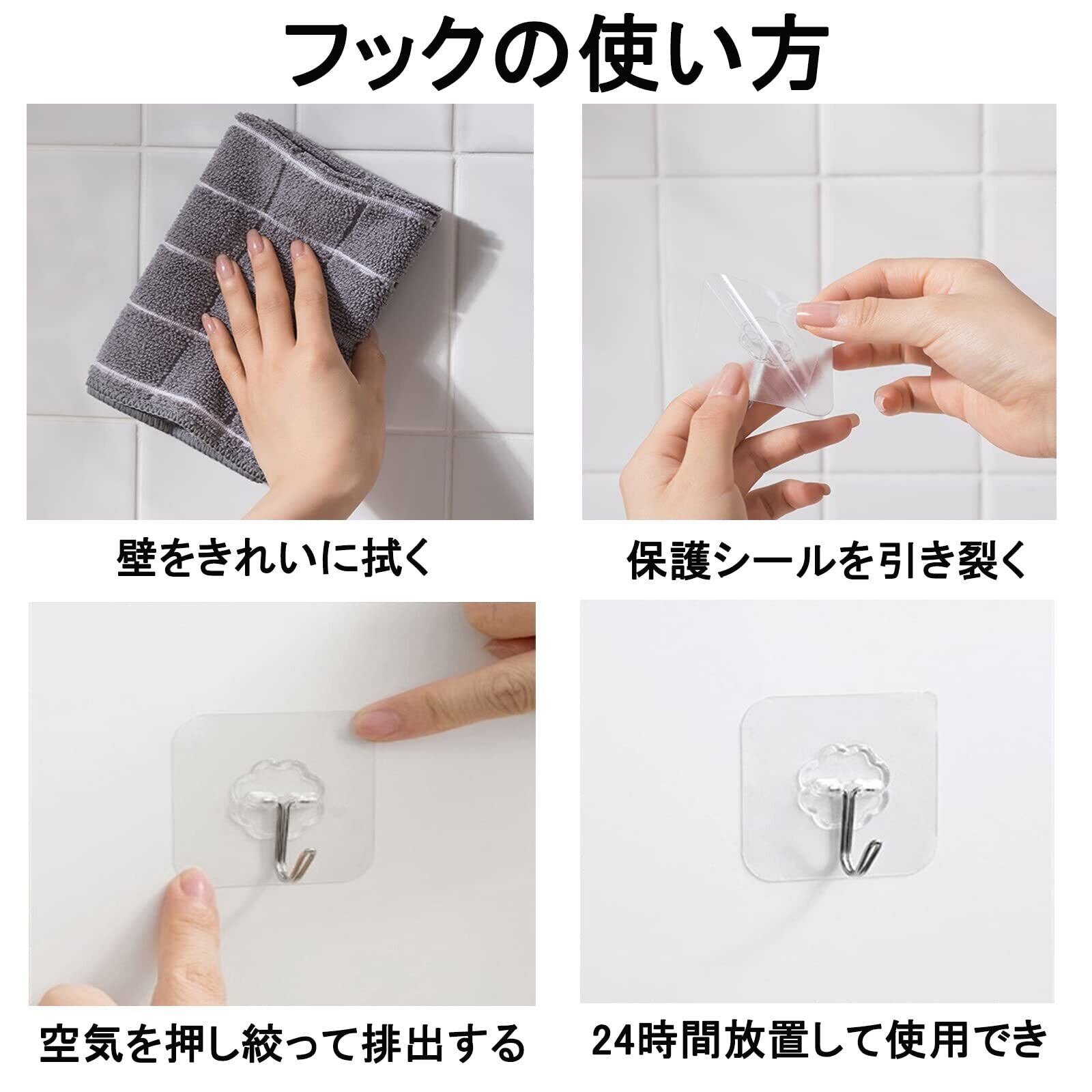 【穴開けない・貼り付け跡なし】粘着シールとグルームが透明で、よくに使用環境に溶け込めます。穴を開ける必要がないので、貼り付け面に傷をつけない、便利で実用的な壁掛フックです。