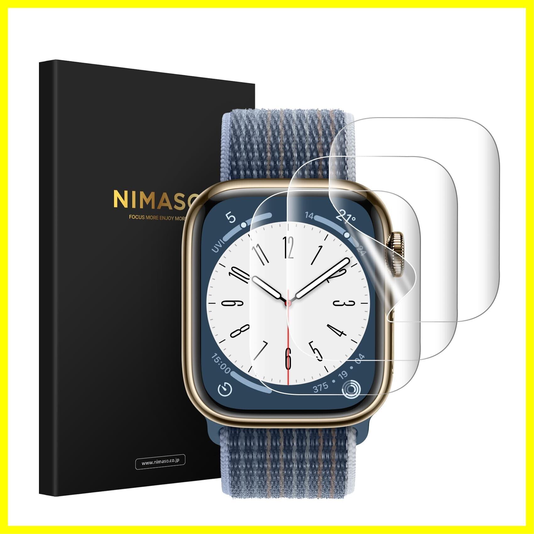 【3枚組】NIMASO フィルム Apple Watch series 9 / 8 / 7 45mm 対応 アップルウォッチ 保護フィルム 高感度タッチ 指紋防止 気泡レス NSW23L983