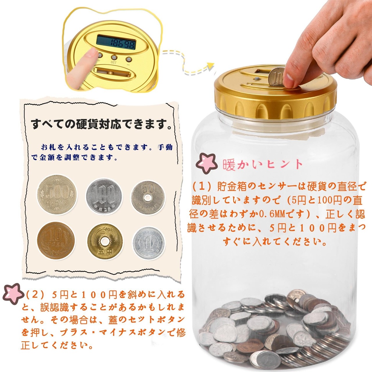 【高精度自動計数】この貯金箱は先進的な計数技術を備えており、入れた硬貨の合計金額を自動で計数することができます。簡単にお金を貯めることができます。