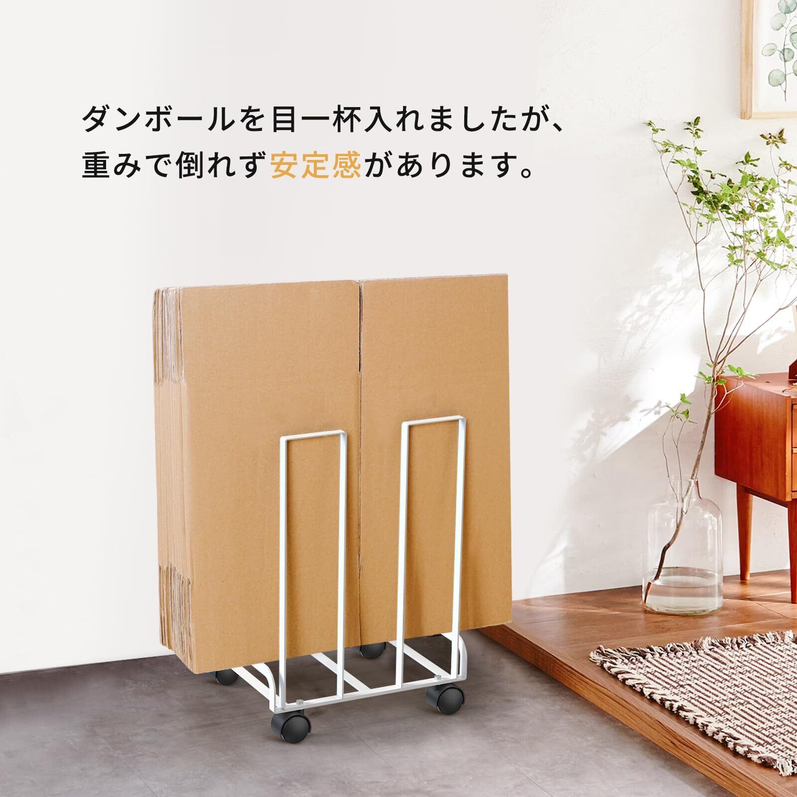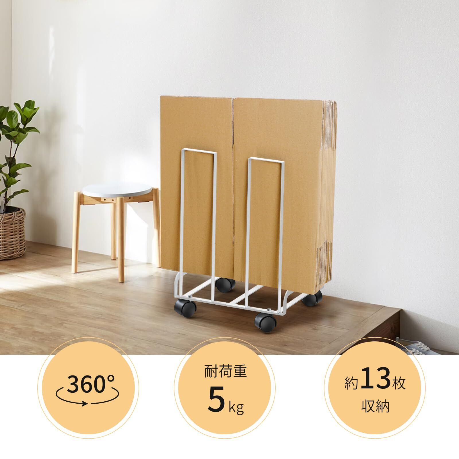 FUNHOO 【段ボールを定位置まとめる】 ダンボールストッカー ホワイト | ダンボールラック ダンボール収納 キャスター付き コンパクト シンプル おしゃれ ダンボール 収納 段ボール ストッカー スタンド 隙間収納 ラック 整理整頓 便利グッズ キッチン 玄関