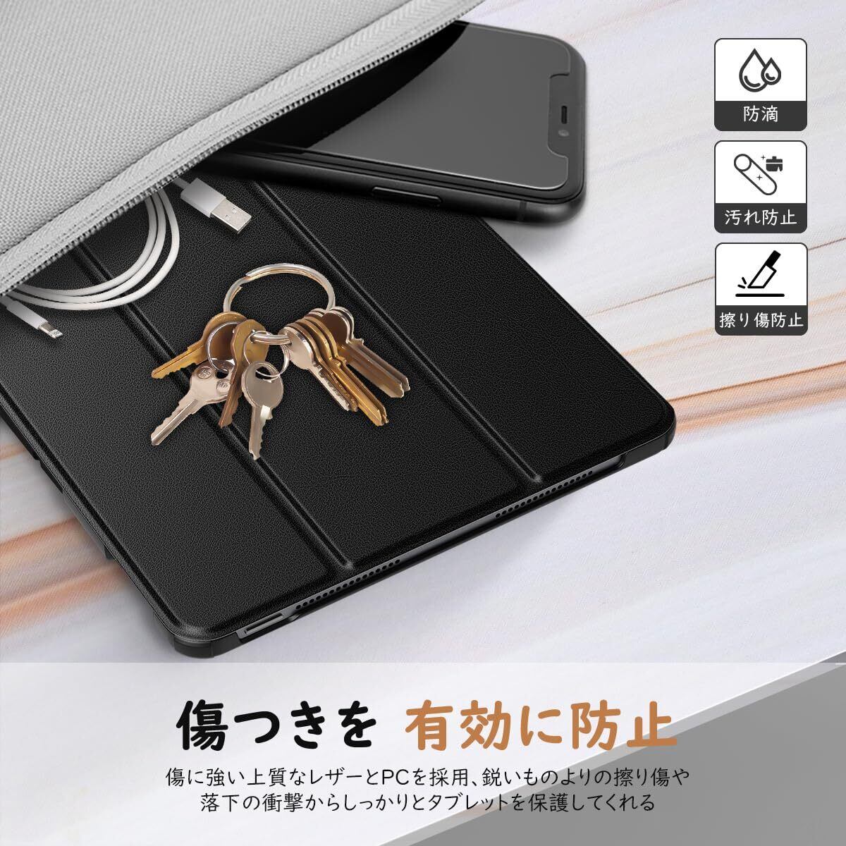 「上質な素材採用」 蓋表面は手触りが良く高級感のあふれる耐久性に優れた高級PUレザーで、バックケースは耐衝撃性の高く頑丈なPC素材を採用しており、裏地材質は液晶表面に優しいマイクロファイバーの仕上がりで、タブレット本体をやわらかく包み込みながら、不意による落下の衝撃から緩和できて、タブレットに最高の保護力を提供してくれます。