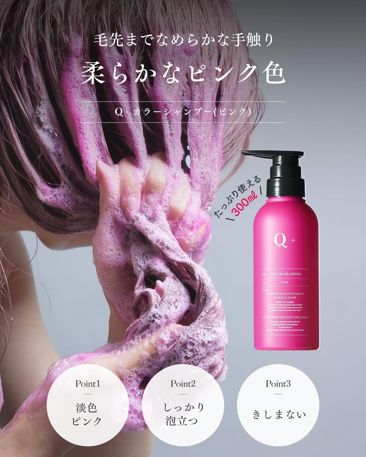 ✨【 サロン仕立ての髪色、そのままに。 】「カラーキープ×ダメージケア」を叶え、ツヤ感溢れるまとまり髪へ Q+( クオリタス ) のカラーシャンプー(ピンク)|●黄ばみやすい明るい髪色 ●色落ちしやすいピンクなどの暖色 の髪色にオススメ