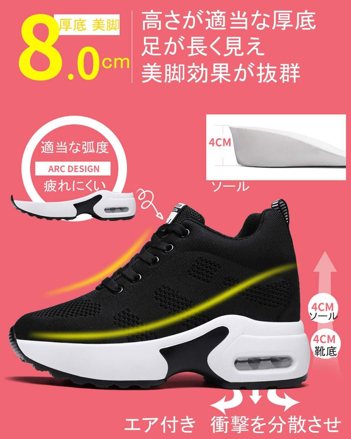 【メイン素材】アッパー:通気メッシュ 靴底:クッション。4.5 cmのインヒール+4 cmのアウトソールがあり。