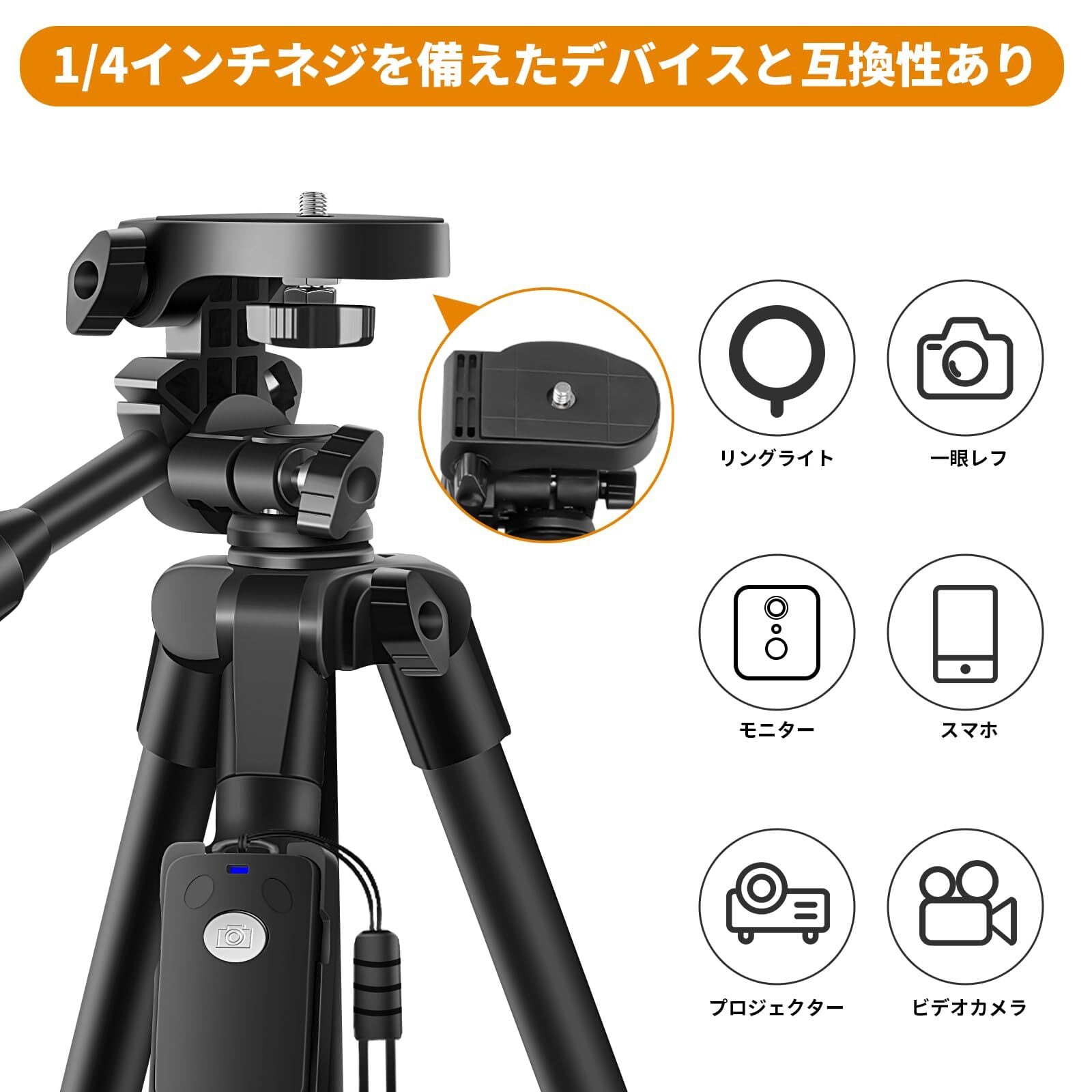 スマホ&カメラ設置可:スマホホルダー付き、カメラだけでなく、スマホでも対応可能。3kgまでのカメラやスマートフォンが設置可能です。