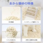 【しっかり固まる】おからの猫砂はエンドウ豆の繊維とコーンスターチから作られています。 細めの猫砂は吸収力がより高く崩れにくく、おしっこの部分だけがしっかりと固まりトイレの床面にもくっつきにくいので