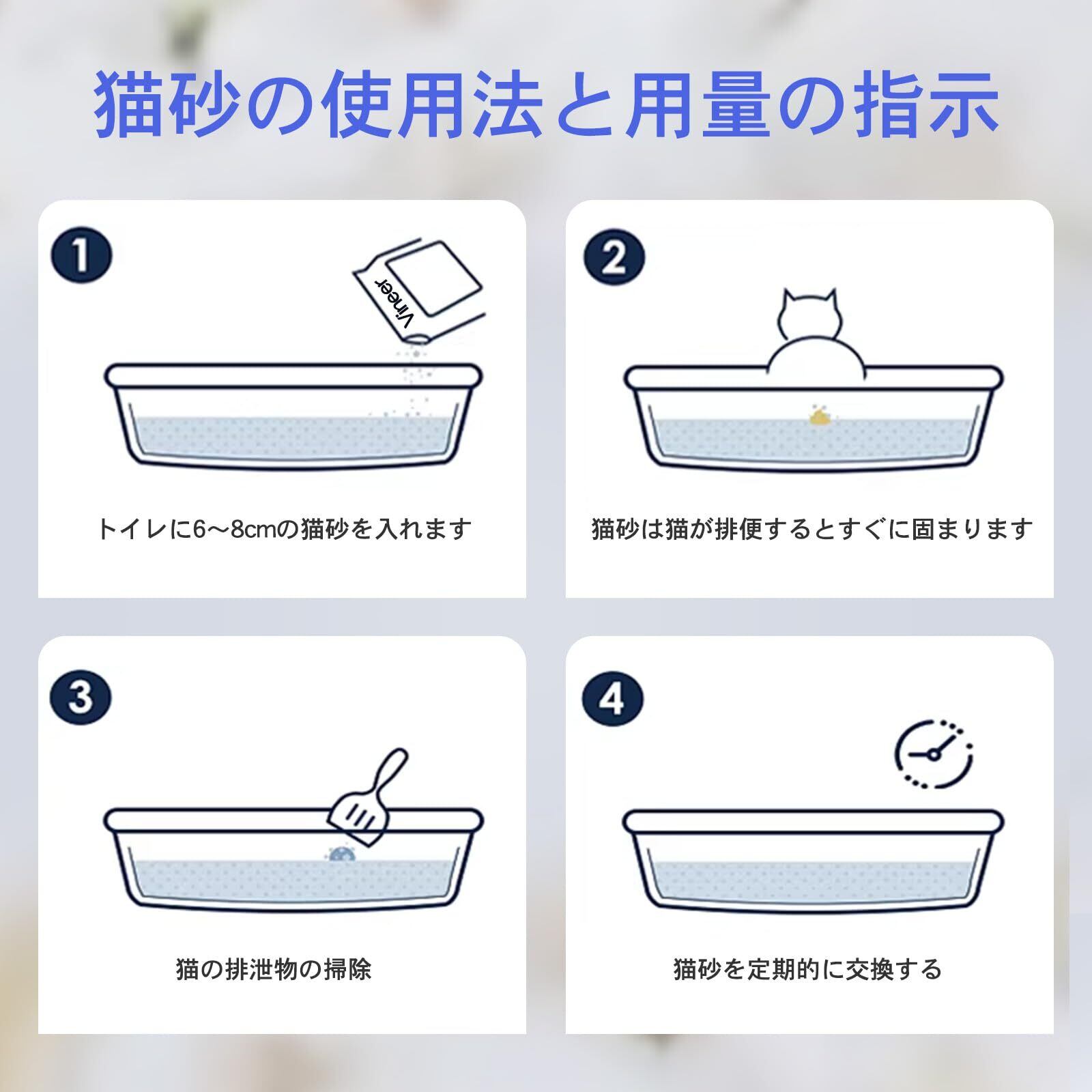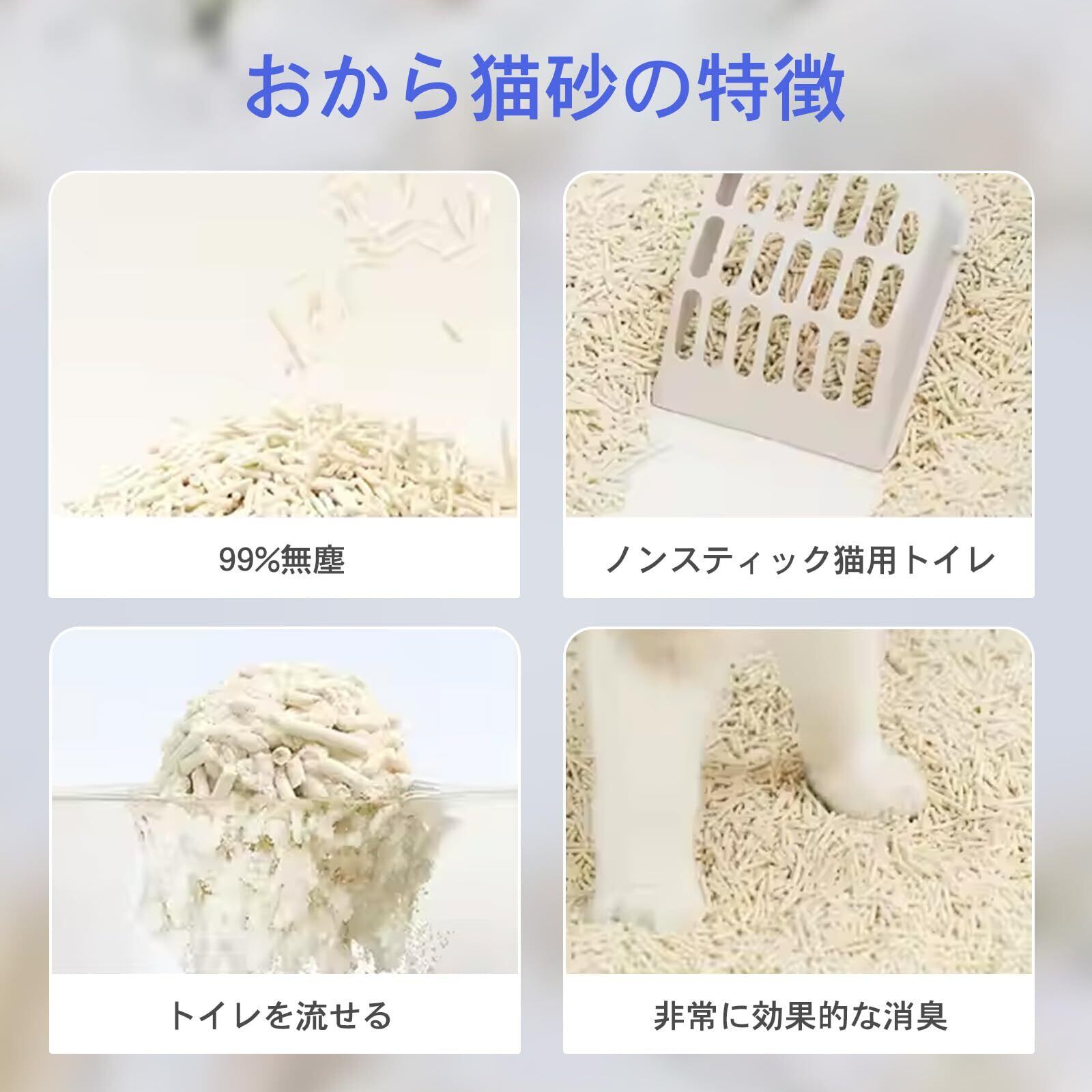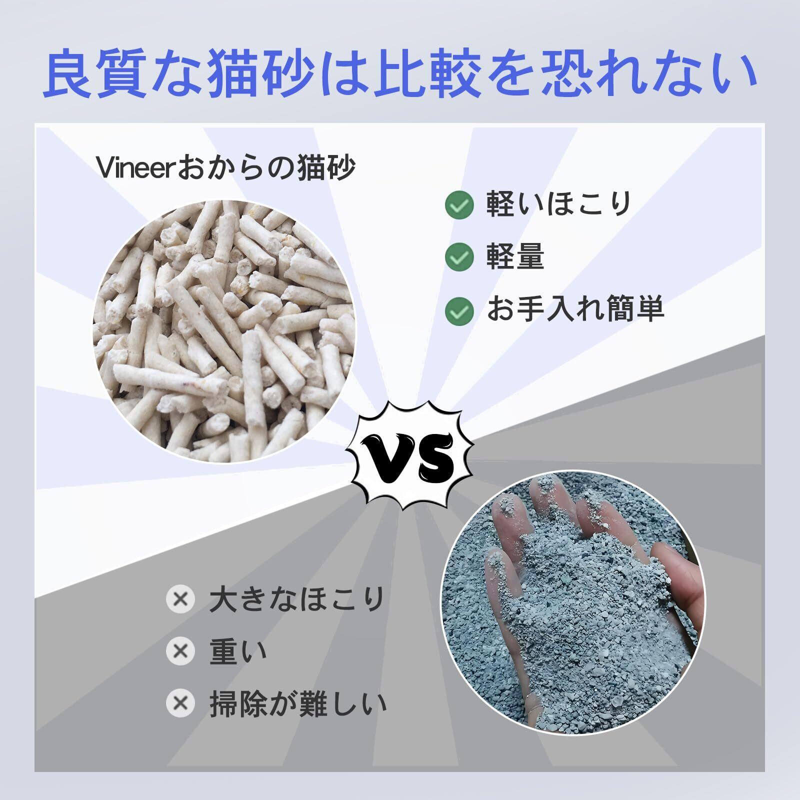【粉塵が少ない】Vineer豆腐猫砂は粉塵が少ないです。粉塵が舞いにくく、猫が排泄後に砂かきをするたびに粉塵を吸い込む可能性が低いです。猫の健康を安心できます