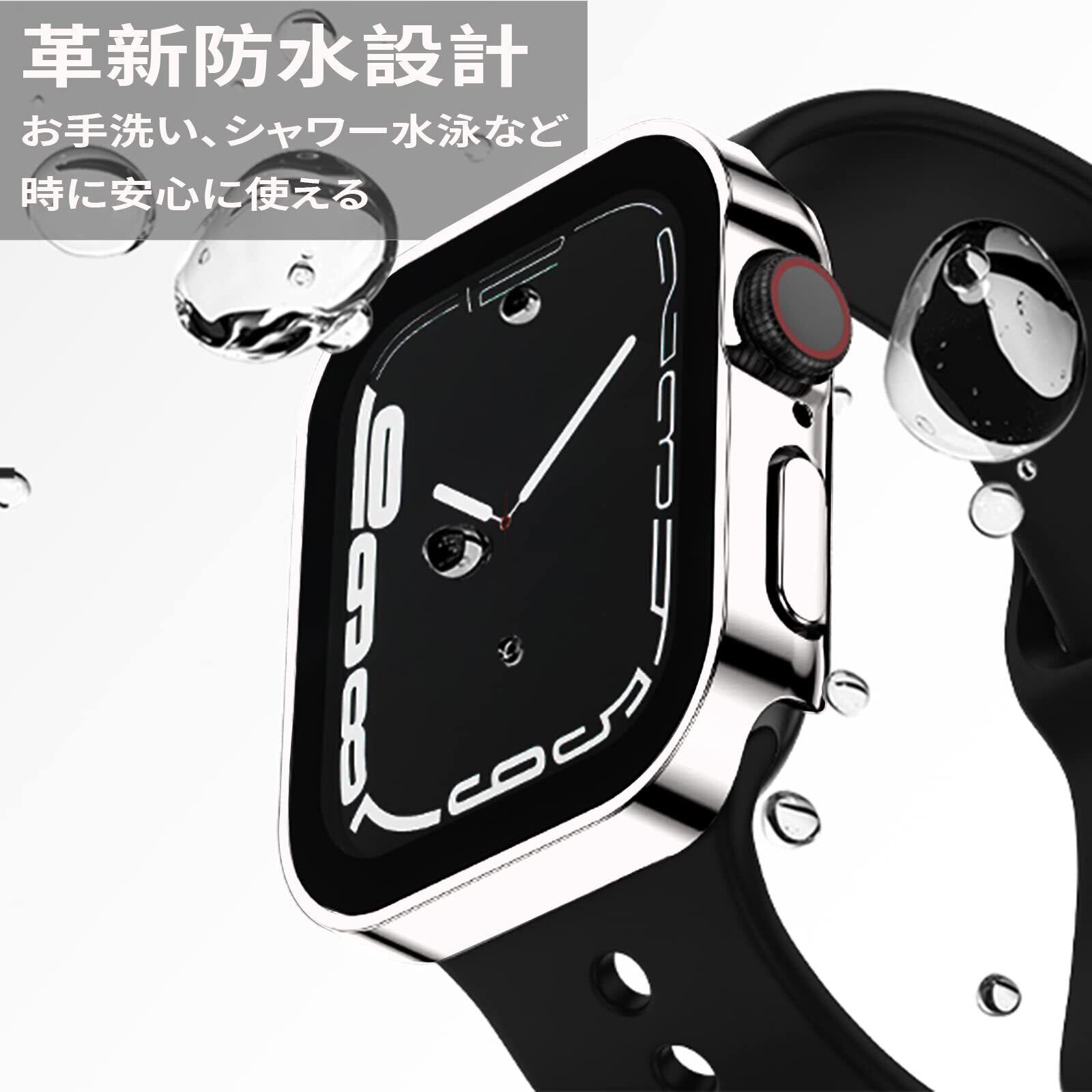 【2023強化版】 for Apple Watch ケース Apple Watch ケース 対応 IP68完全防水 バンド 水泳・スポーツ専用 防水ケース 3D直角エッジデザイン Apple Watch Series 9/8/7 41mm対応 光沢のシルバー