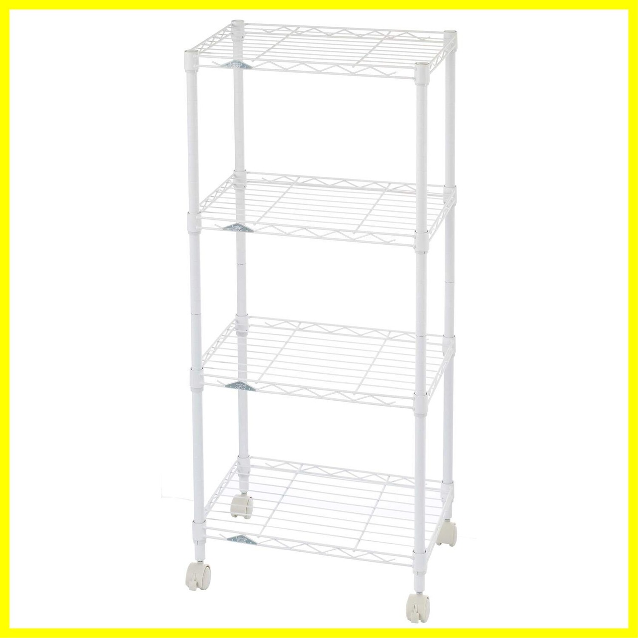 ドウシシャ ルミナス カラーラック 白 ホワイト 4段 幅45 スリム オシャレでかわいい スチールラック 棚 収納 全体耐荷重120kg キャスター付き ポール径19mm 幅45.5×奥行29.5×高さ104 キッチン ランドリー 押入れ LCR45-4WH