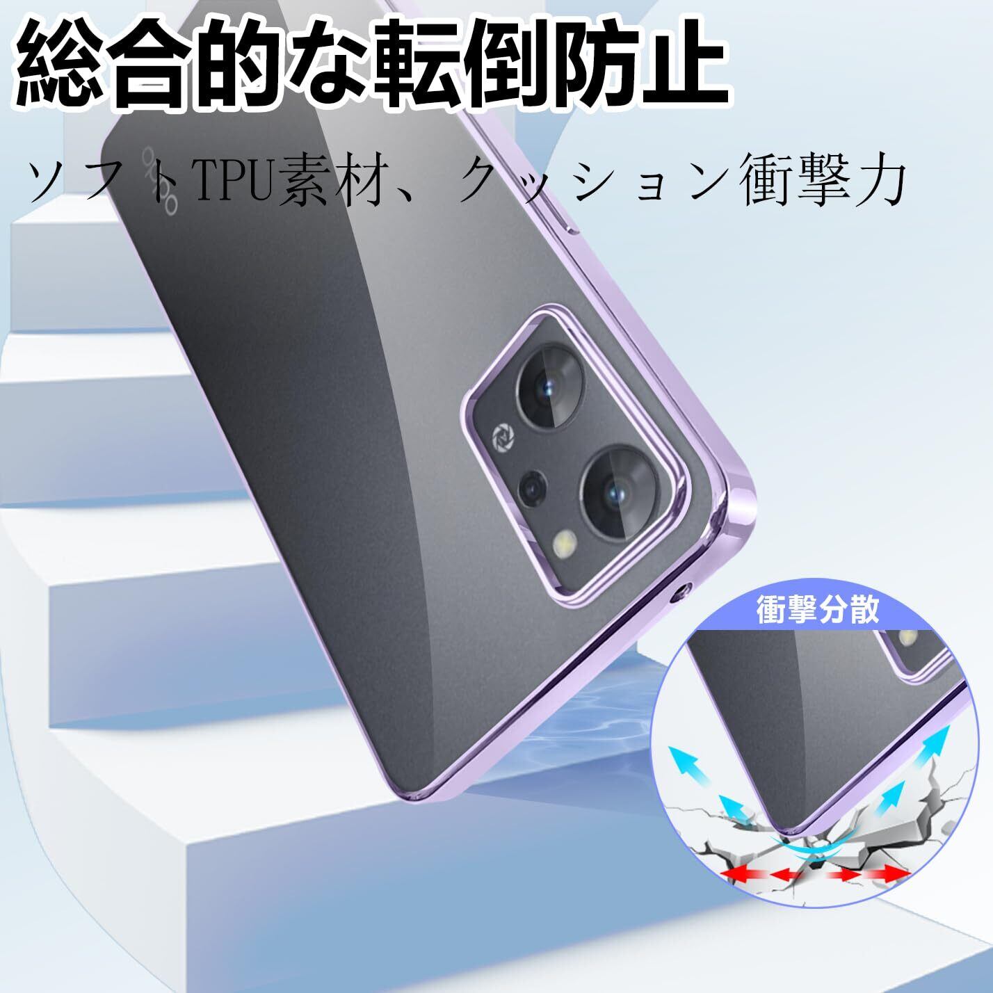 OPPO Reno9 A ケース OPPO Reno7 A ケース クリア おっぽ スマホ 9a 7a カバー オッポリノ9a レノ7a 耐衝撃 OPG04 A201OP スマホケース tpu かわいい おしゃれ 可愛い(Reno 9A/7A,パープル)