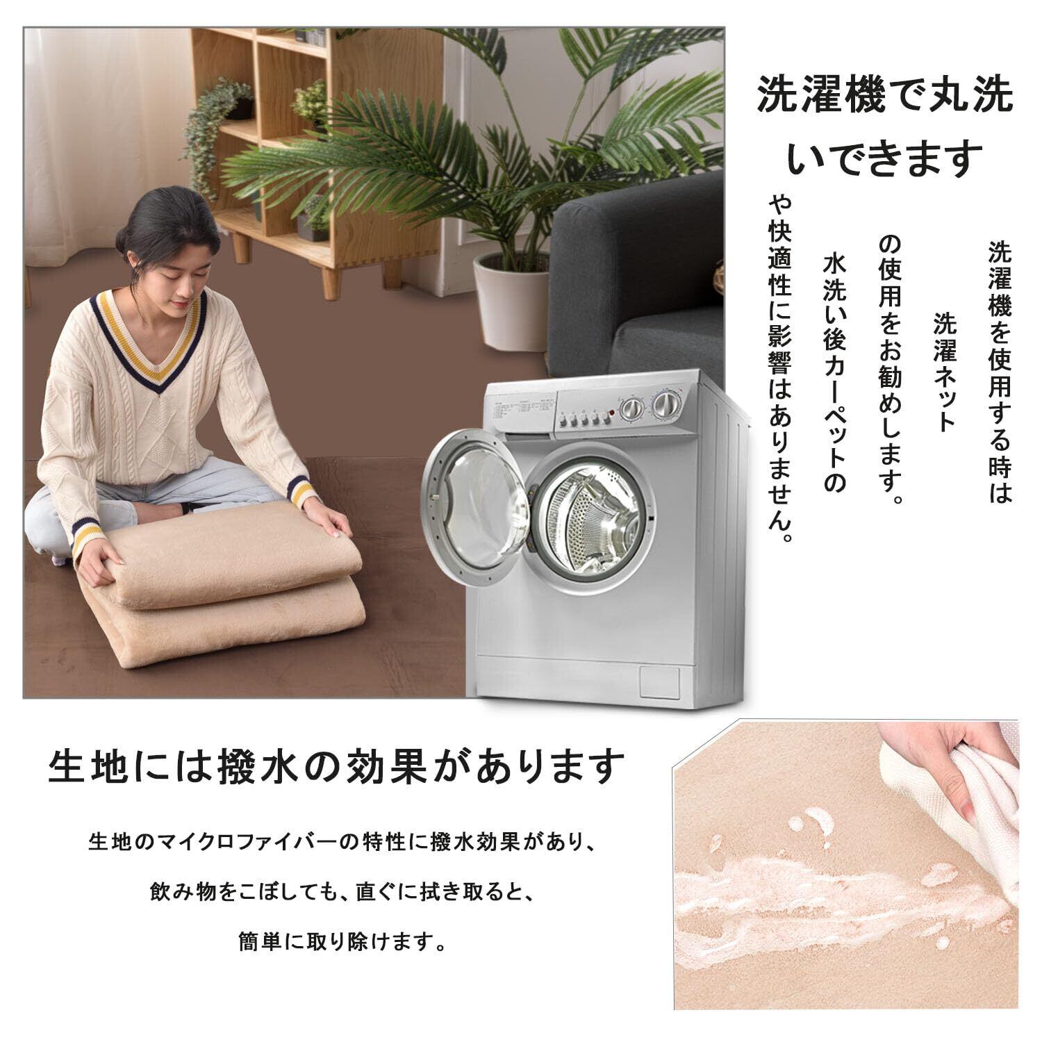 【丸洗いOK 】この床暖房対応カーペット3畳はお手洗いと洗濯機洗い(洗濯ネットの使用をお勧め)に対応しています。掃除機で掃除することができる、洗えるラグ3畳のフランネルの毛足が適切な長さで、ゴミやほこりが絡まりにくい。