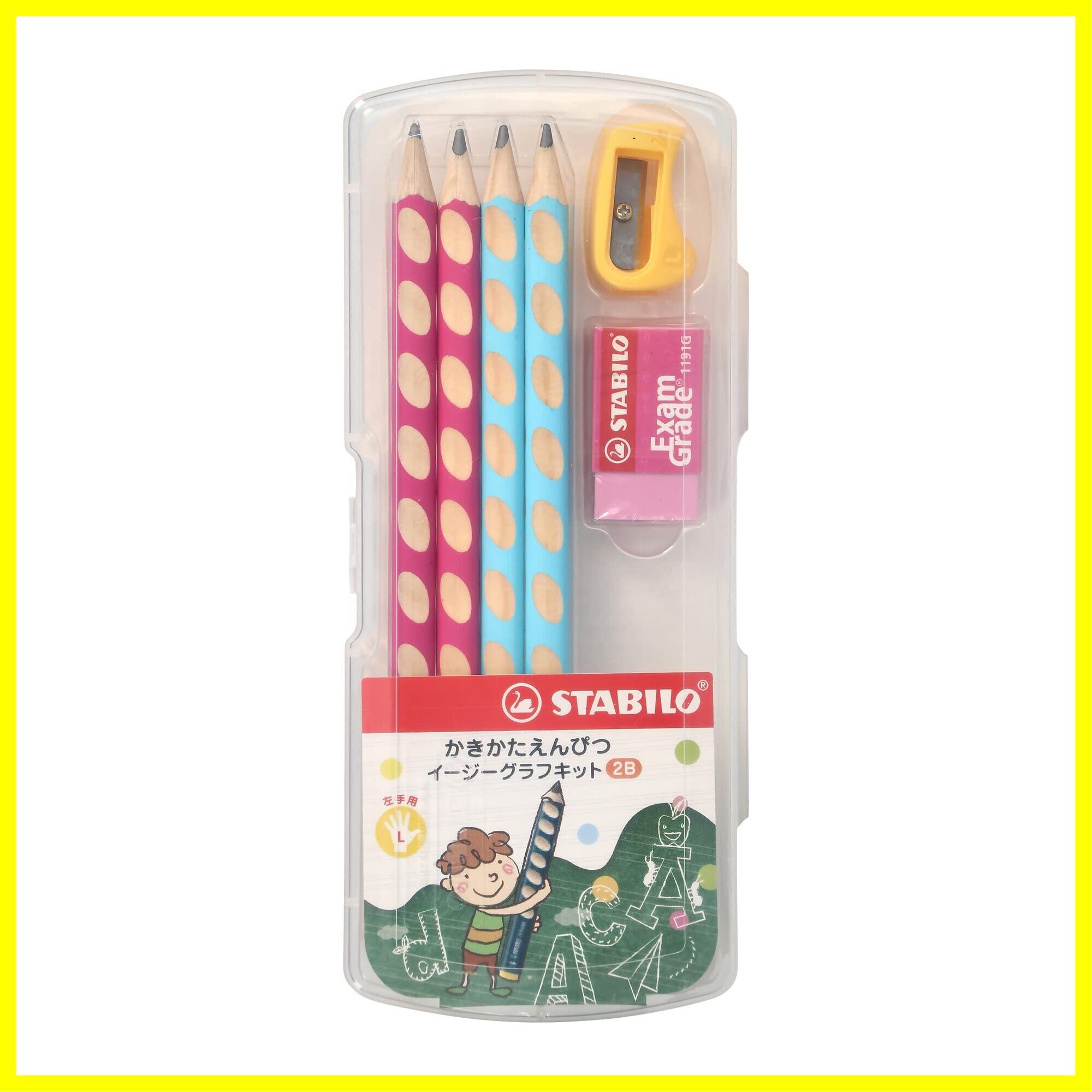 STABILO スタビロ かきかた学習鉛筆 イージーグラフ スターターセット 2B 2色各2本 左手用 三角 持ち方 矯正 名前入り 子供 幼児 男の子 女の子 4本 LP0076 ブルー・ピンク