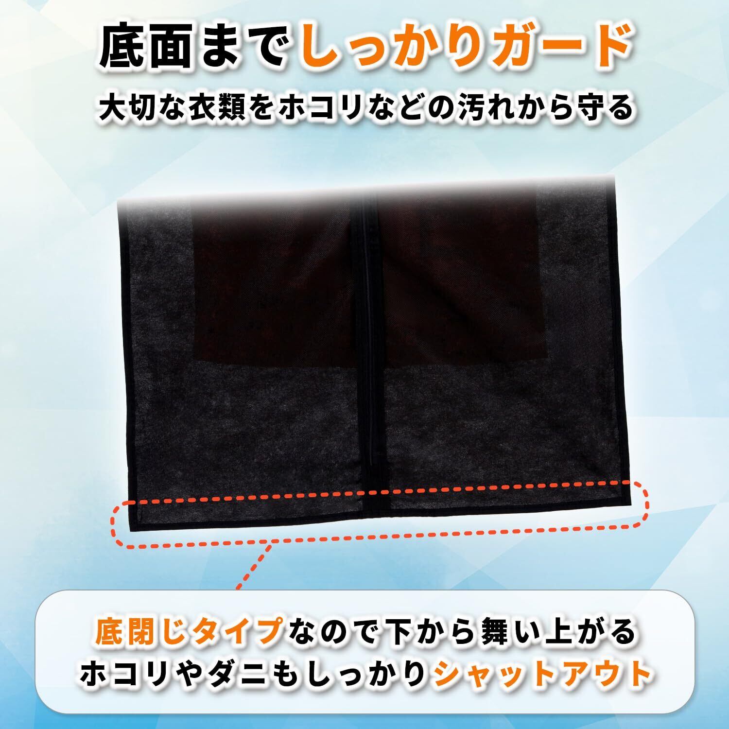 ●通気性が良く湿気やにおいのこもりにくい不織布製の衣類カバー。