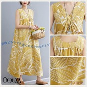 レトロなデザインの2wayノースリーブワンピースが登場! 華やかに彩る、上品なノースリーブロングワンピースは一枚でもお洒落に決まり、動くたびにふんわり揺れて、女性らしさ溢れるシルエットを演出できます◎ 品のある大柄が目を惹く、大人のエレガンスな夏ワンピースです。 毎日着たくなるような締め付け感なしの楽ちんでストレスフリーな着心地を提供します。 ふんわり揺れるスカートが華やかさを演出し、身体のラインを拾わないゆったりとしたシルエットで大きいサイズの方やマタニティの方にも着やすく体型カバーも叶う一着です。 身幅が広めで少しルーズなシルエットでリラックス感が漂います。