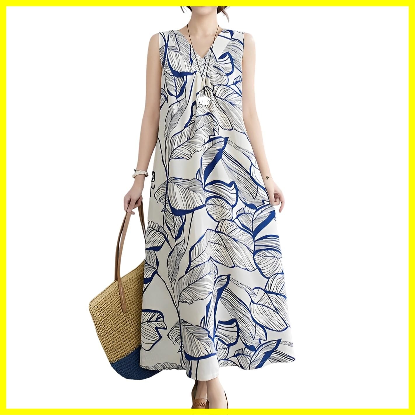 [UQQA] ノースリーブ ワンピース レディース 夏 Vネック マキシ丈 リゾート ポケット付き