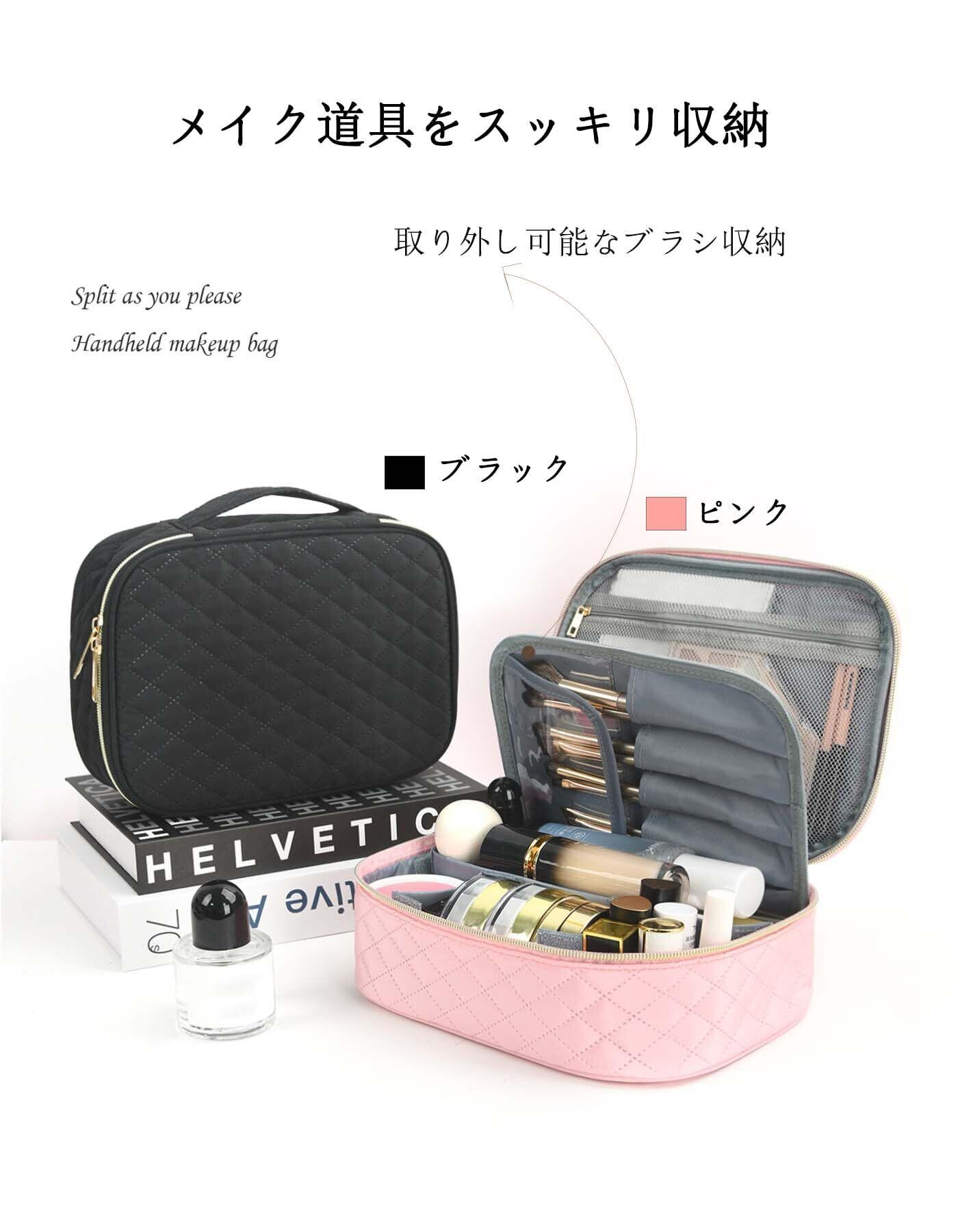 化粧ポーチ 化粧品収納ポーチ メイクバッグ 仕切り ブラシ収納ポケット メイク道具収納 ダブルファスナー 軽量 クッションあり 人気 旅行 ギフト (ピンク)