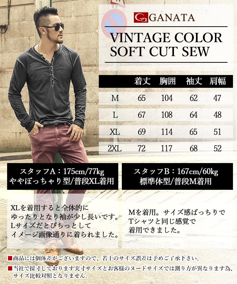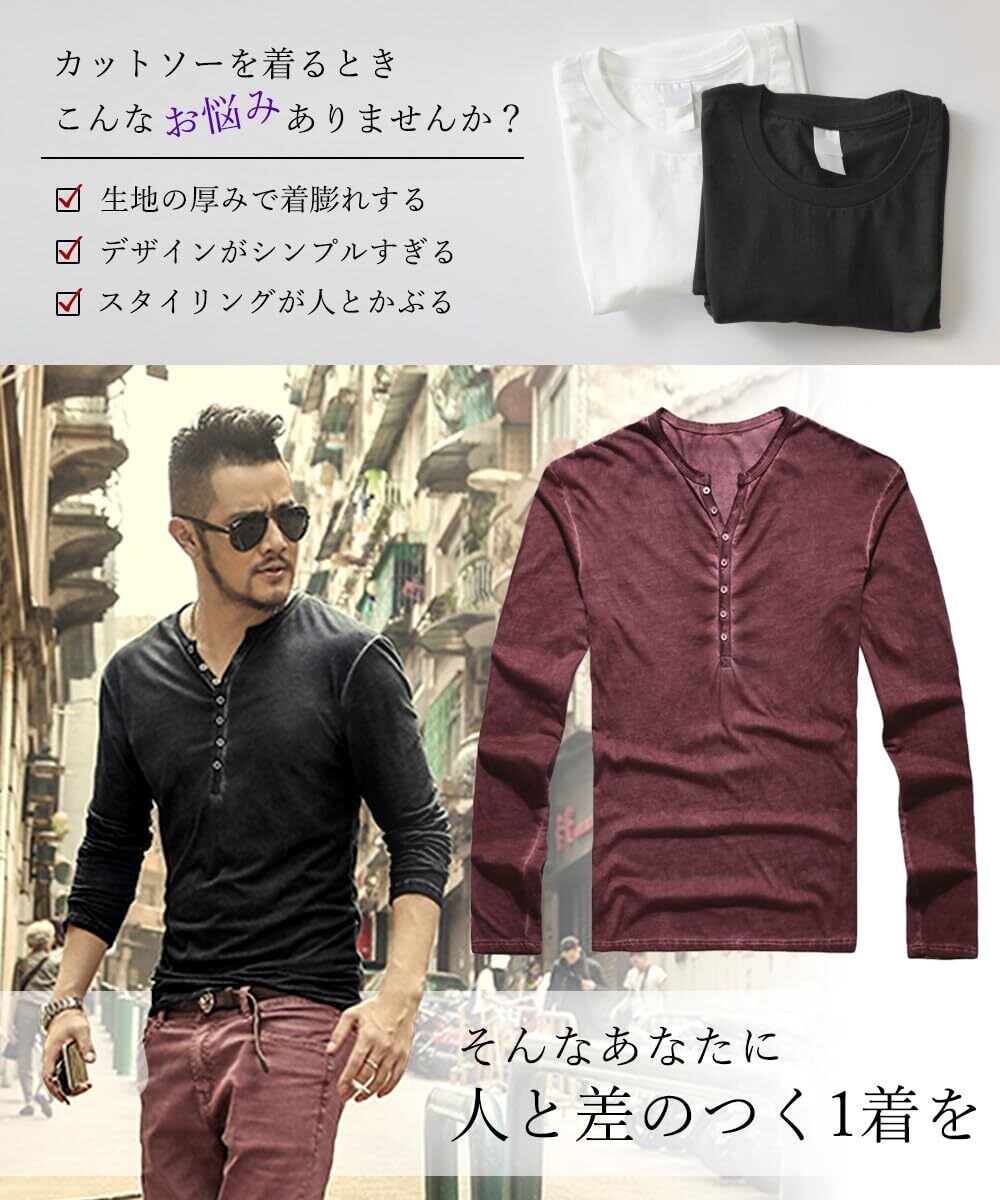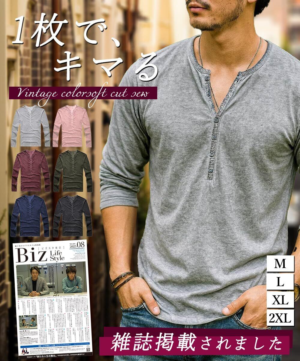 [ガナタ] 【雑誌掲載モデル】 ヘンリーネック ビター系 カットソー ちょい悪ファッション ヴィンテージ風 大人 カジュアル シャツ トップス メンズ