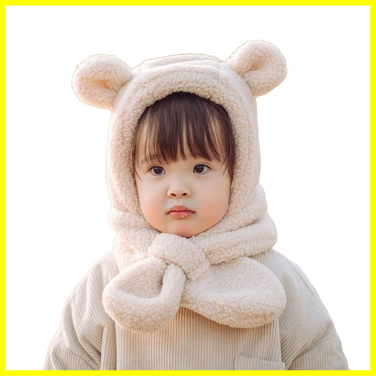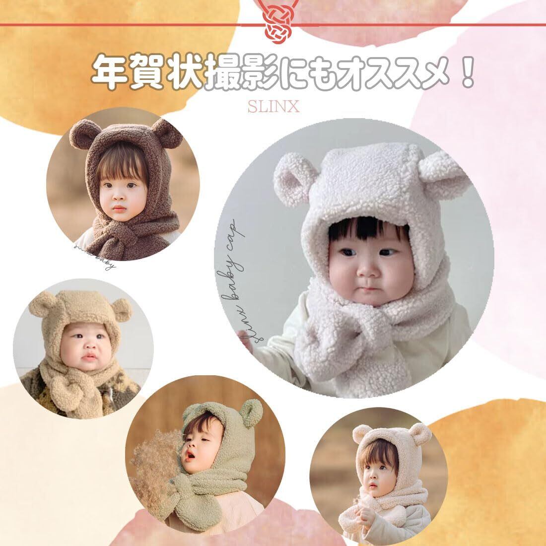 [SLINX] ベビー 新生児 帽子 動物 耳 くま くま耳 可愛い マフラー あったか 防寒 子供用 男の子 女の子 キッズ 赤ちゃん 春 秋 冬 0~2歳 子ども もこもこ フリーサイズ DM08