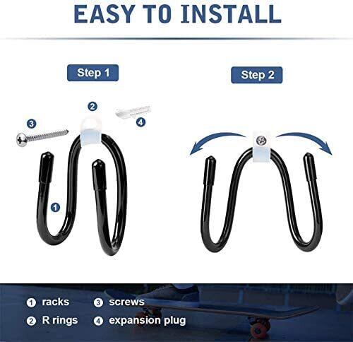 【取り付けが簡単】 壁に簡単に取り付けられます縦方向のみで、横方向には向きません。 スケートボードの2つのホイールを保持するために垂直に取り付けてください。