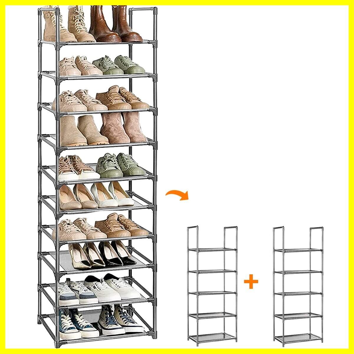 シューズラック 10段 靴収納 18-20足 靴棚 下駄箱 省スペース シューズボックス スリム 玄関に靴を効率収納 靴入れ 組み立て式 幅約45×奥行28×高さ176cm (グレー 10段)