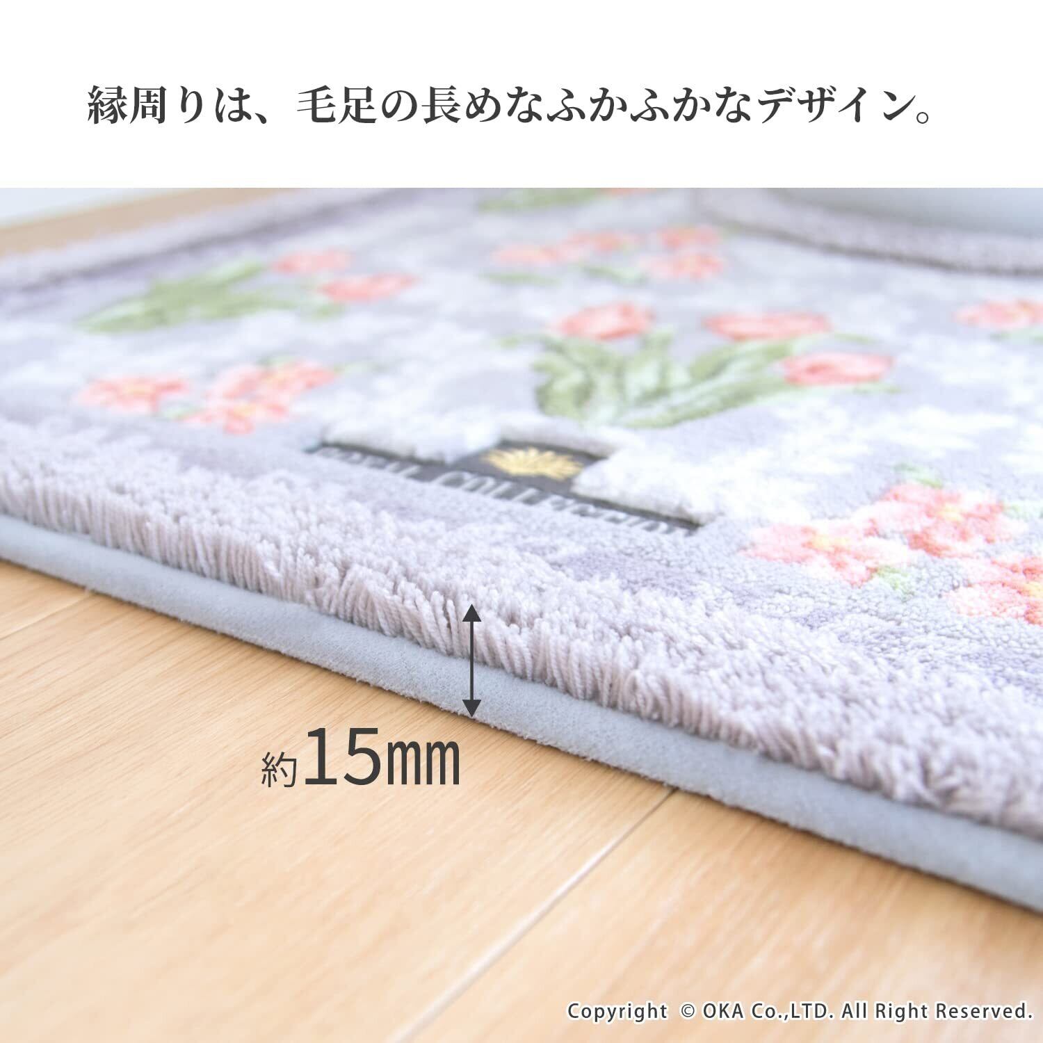 オカ(OKA) ロイヤルコレクション アーツ トイレマット 約75cm×63cm(ロングサイズ)(首下 約57cm) ピンク (洗える 北欧 おしゃれ)