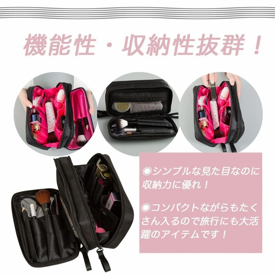 Rajjo 化粧ポーチ 二層 ポケット 機能的 ダブル ファスナー メイク ポーチ コスメ 収納 小物入れ (ブラック/ブラック)